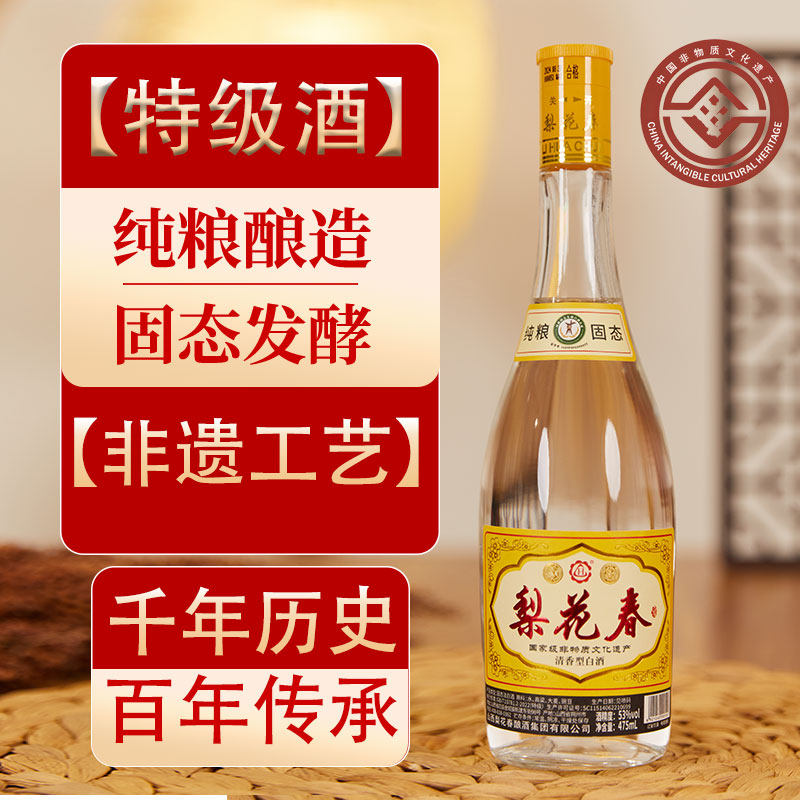 【国家非遗特级酒】山西梨花春53度42度固态纯粮食发酵白酒整箱