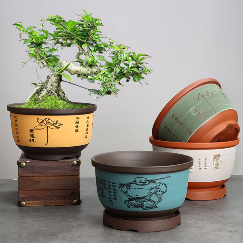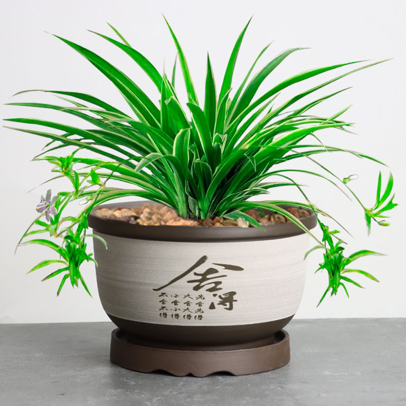 紫砂兰花盆中国风大号带托盘陶瓷室内复古文竹蝴蝶兰创意盆栽多肉