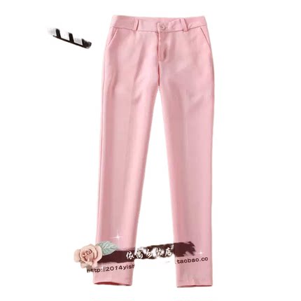 2024夏季装新款女裤职业西装裤浅粉色九分裤修身包臀女西裤小脚裤