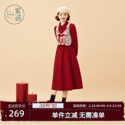 紫涵新中式盘扣马甲背心收腰衬衫连衣裙两件套装女秋季新款a字裙