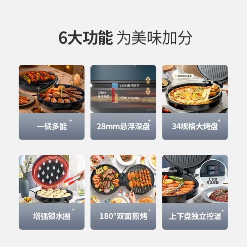 利仁电饼铛烙饼锅档加大多功能锅家用3412加深煎饼双面加热煎烤机