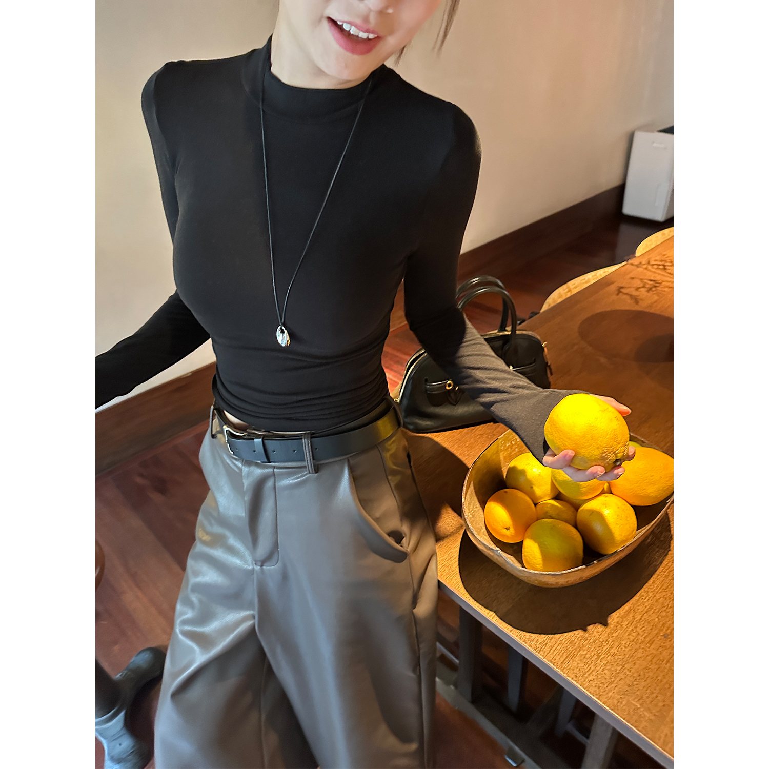 YANGLE_山羊绒长袖T恤女2025年秋冬新款半高领弹力修身内搭打底衫