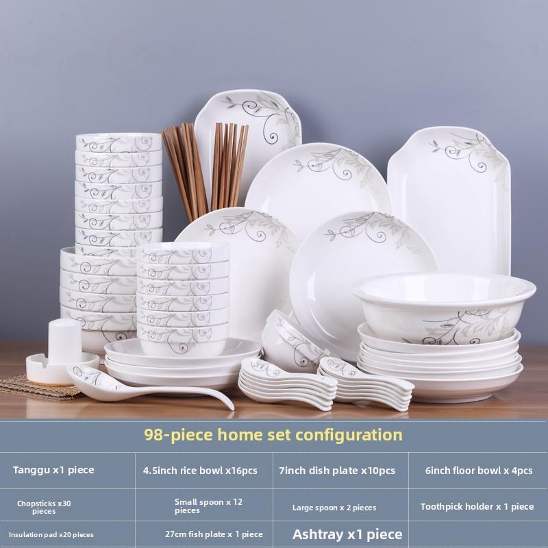 景德镇98件碗碟套装 家用陶瓷简约个性碗筷盘子单个组合10人餐具