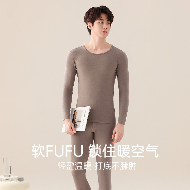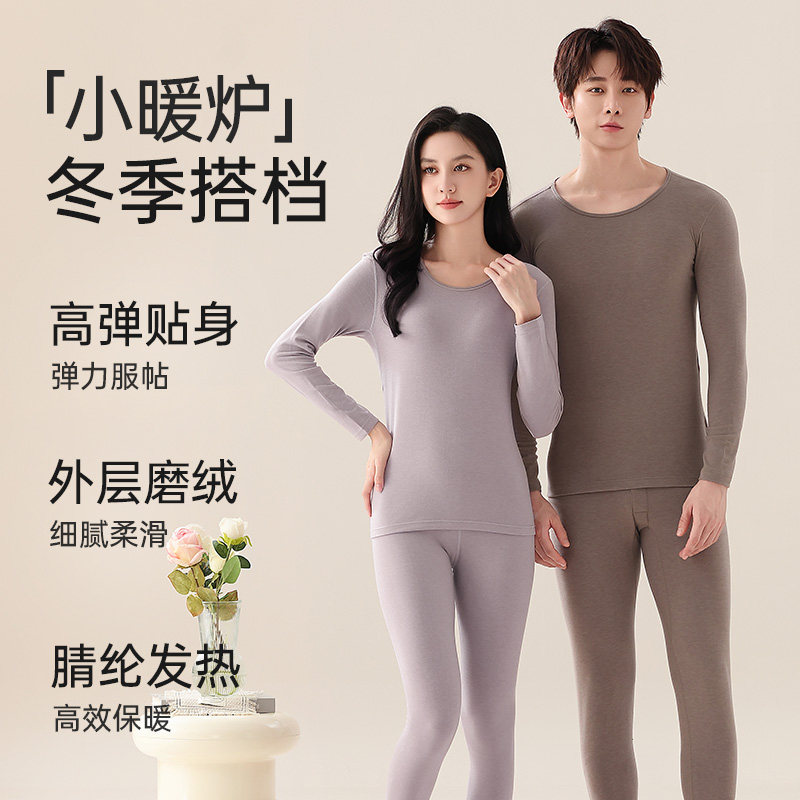 新一系秋冬秋衣秋裤情侣男女薄款圆领保暖内衣套装磨绒打底毛衫