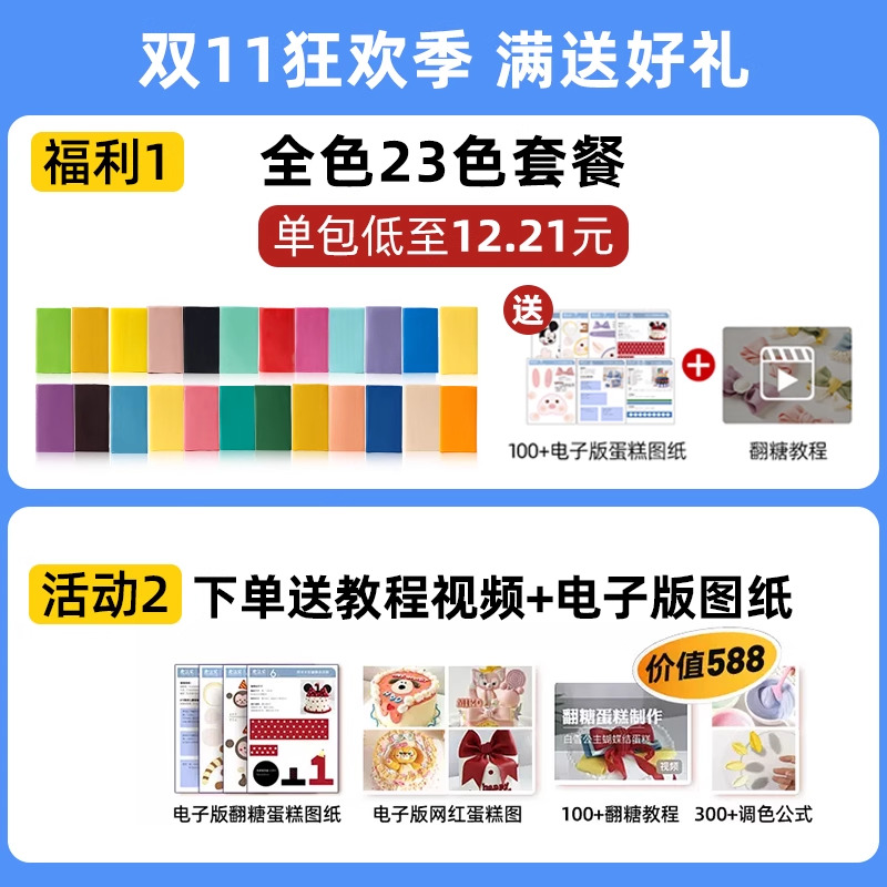 FC法采彩色翻糖膏干佩斯红色大红色黑色防潮蛋糕装饰材料糖皮烘焙