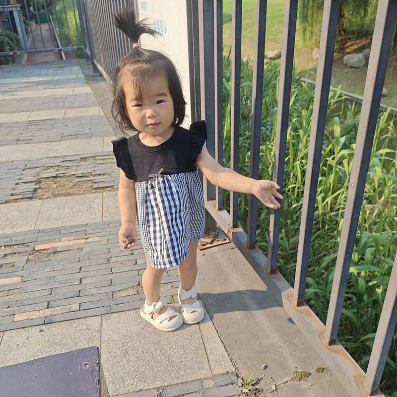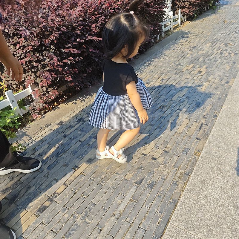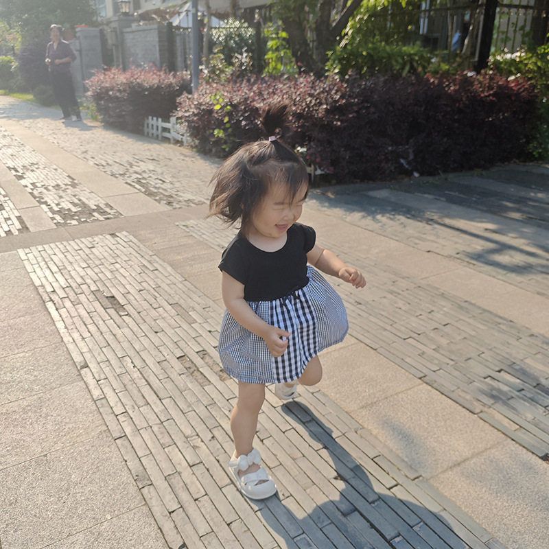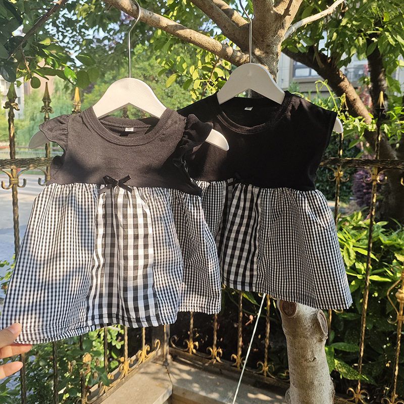 贝哆哈女童连衣裙夏季格子连身裙公主裙女宝可爱圆领套头娃娃裙