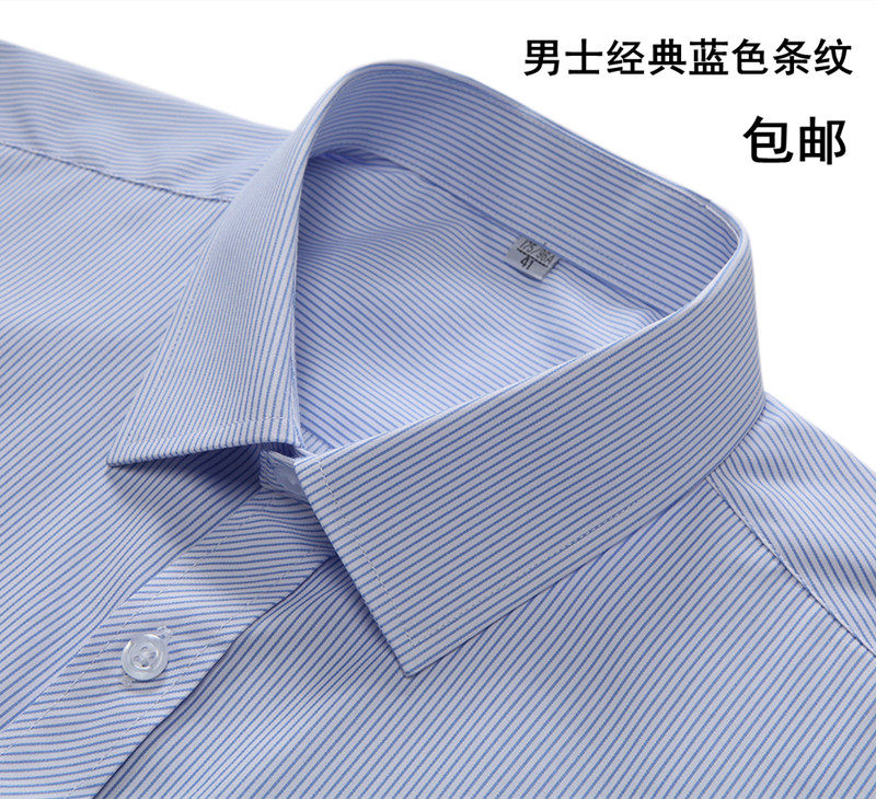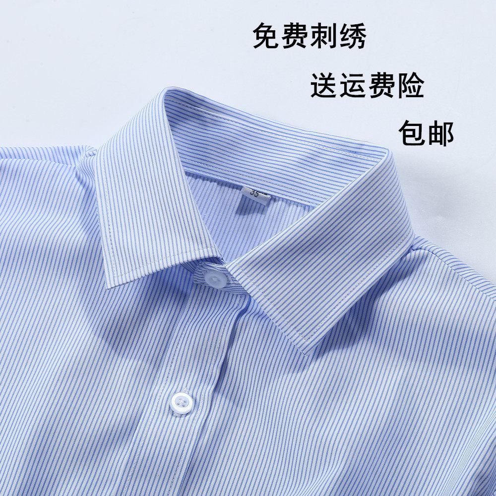 女士白底蓝色细条纹长袖职业装衬衫银行移动联通电信工装寸衫大码