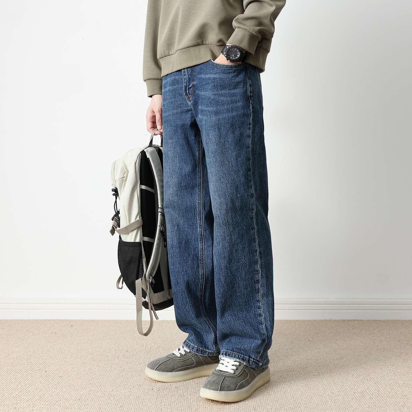 水洗宽松直筒阔腿牛仔裤