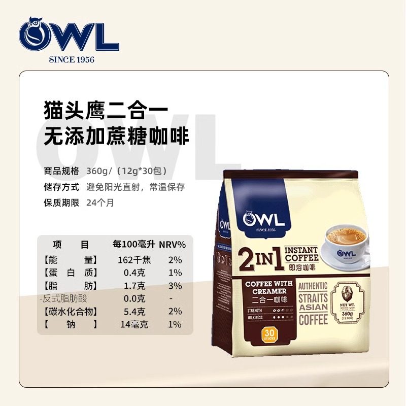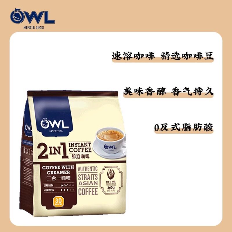 owl猫头鹰咖啡原装进口2合1速溶咖啡0添加蔗糖咖啡粉3包