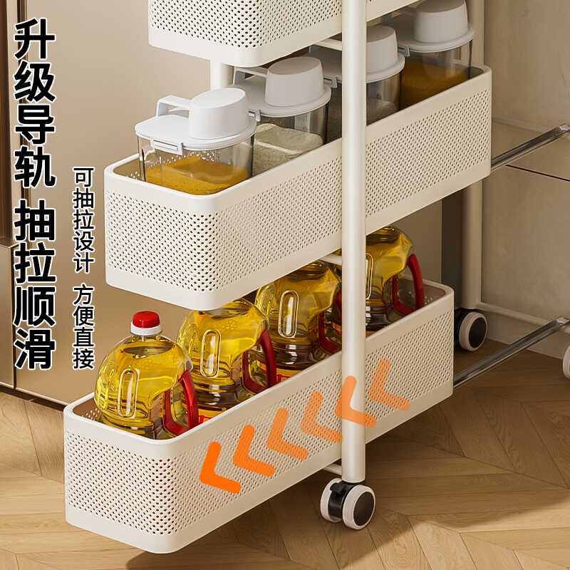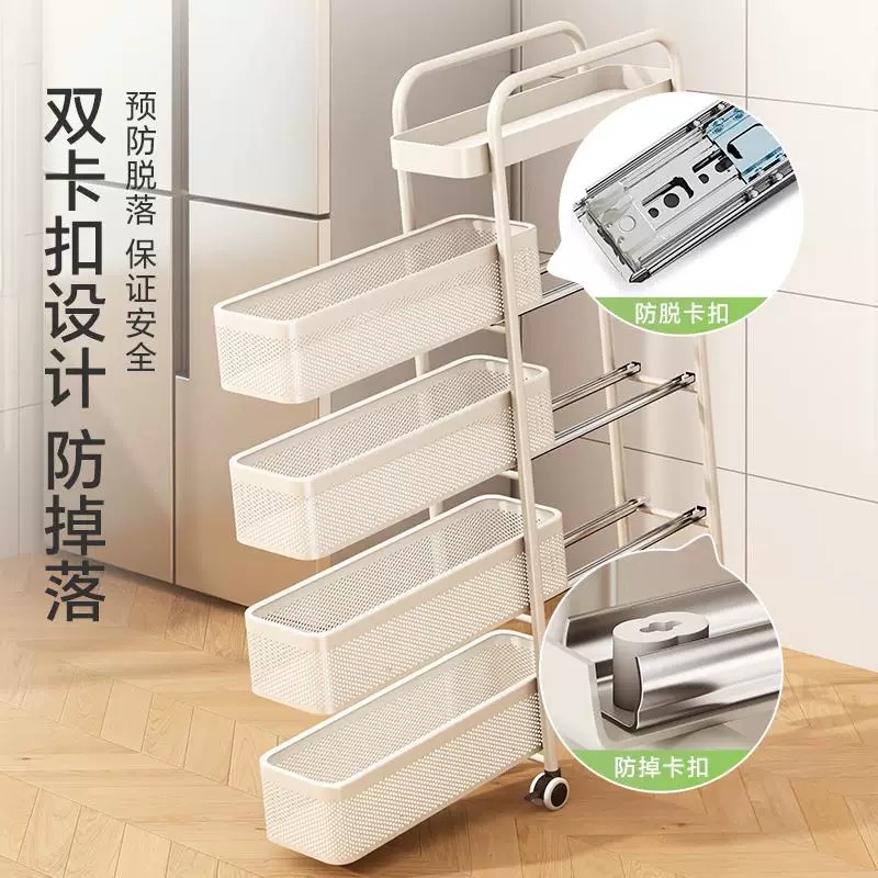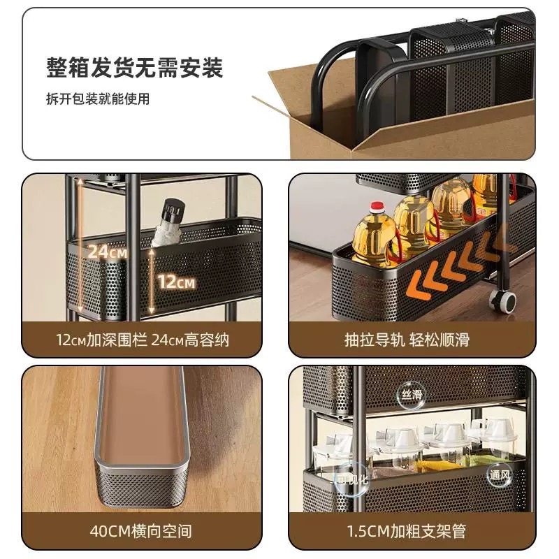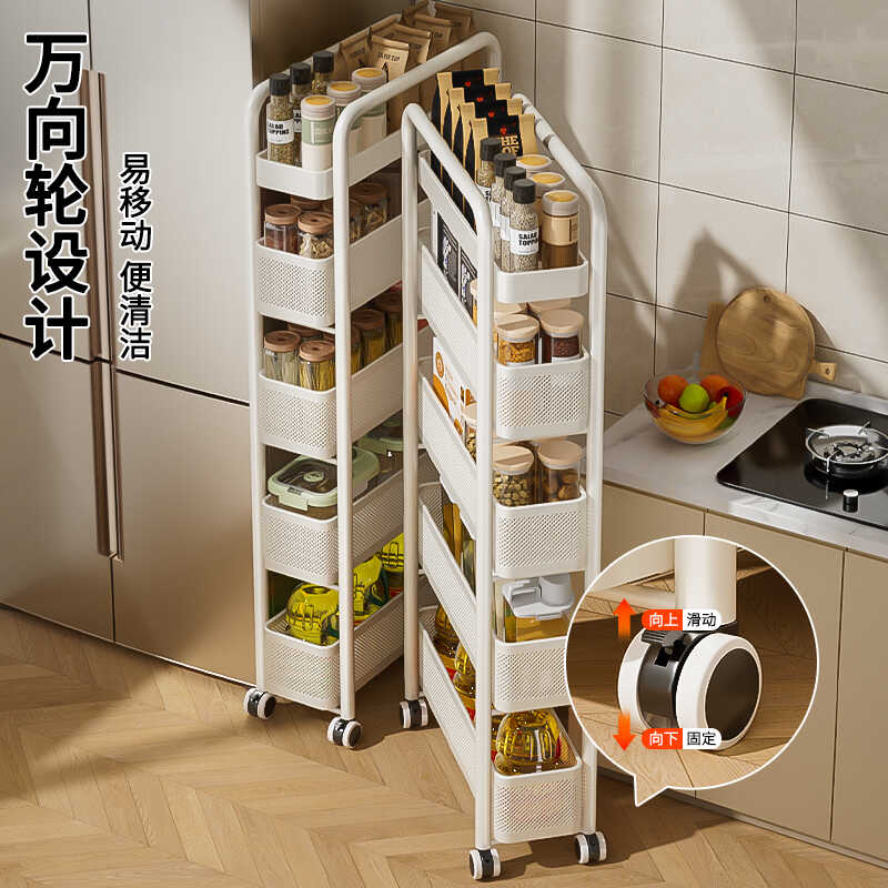 日本厨房多功能置物架极窄缝隙收纳柜多层冰箱侧面抽拉柜果蔬推车