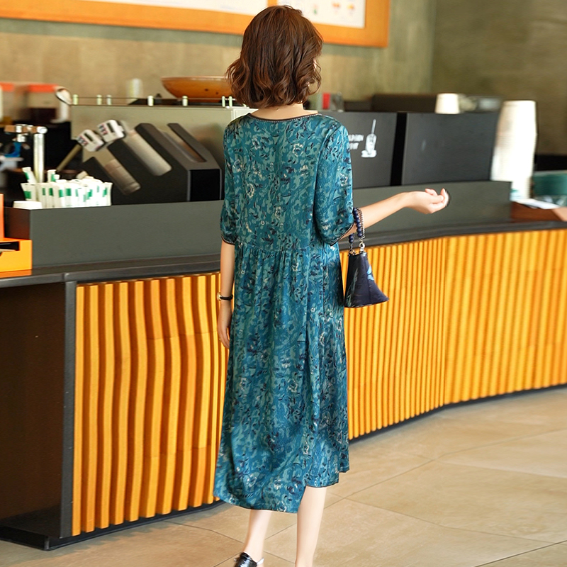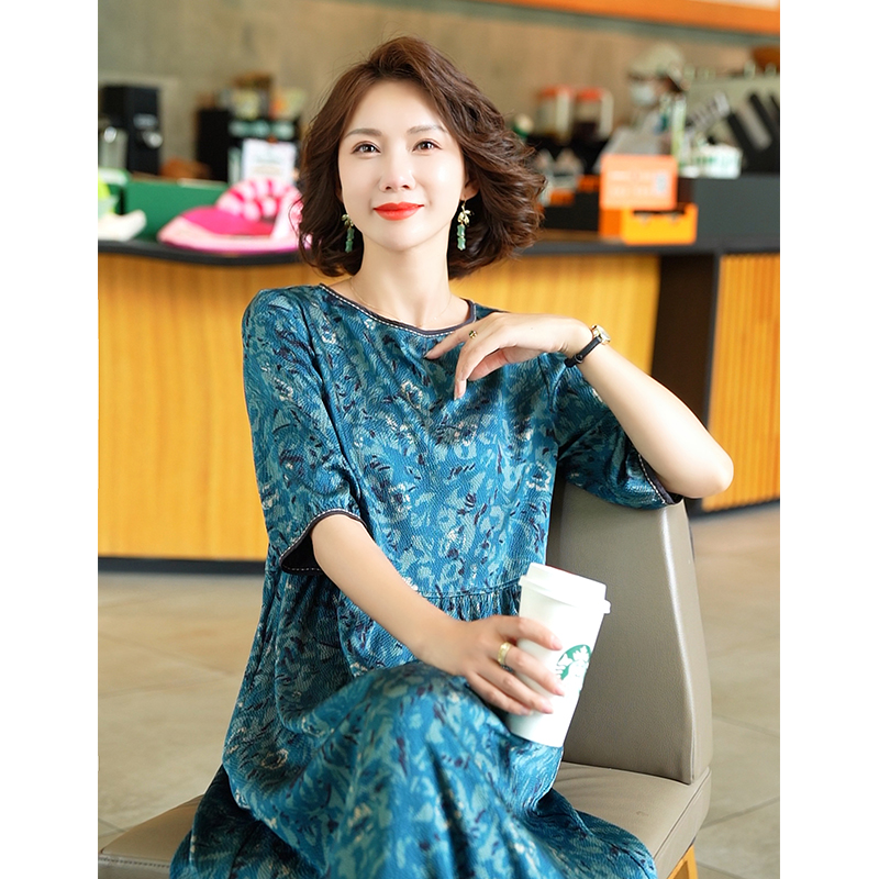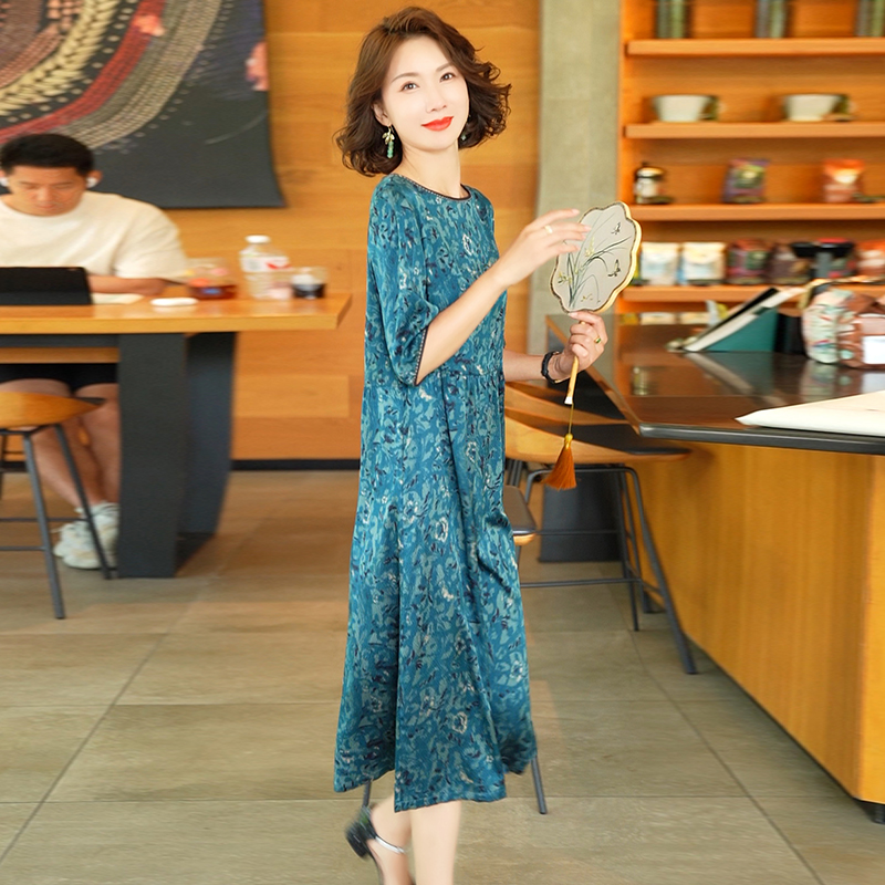 夏季2024年新款杭州真丝印花连衣裙女显瘦气质中年妈妈桑蚕丝裙子