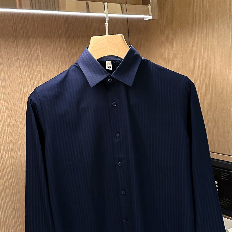 英伦风商务绅士衬衫男高级感痞帅时尚高端暗条纹修身衬衣男款长袖