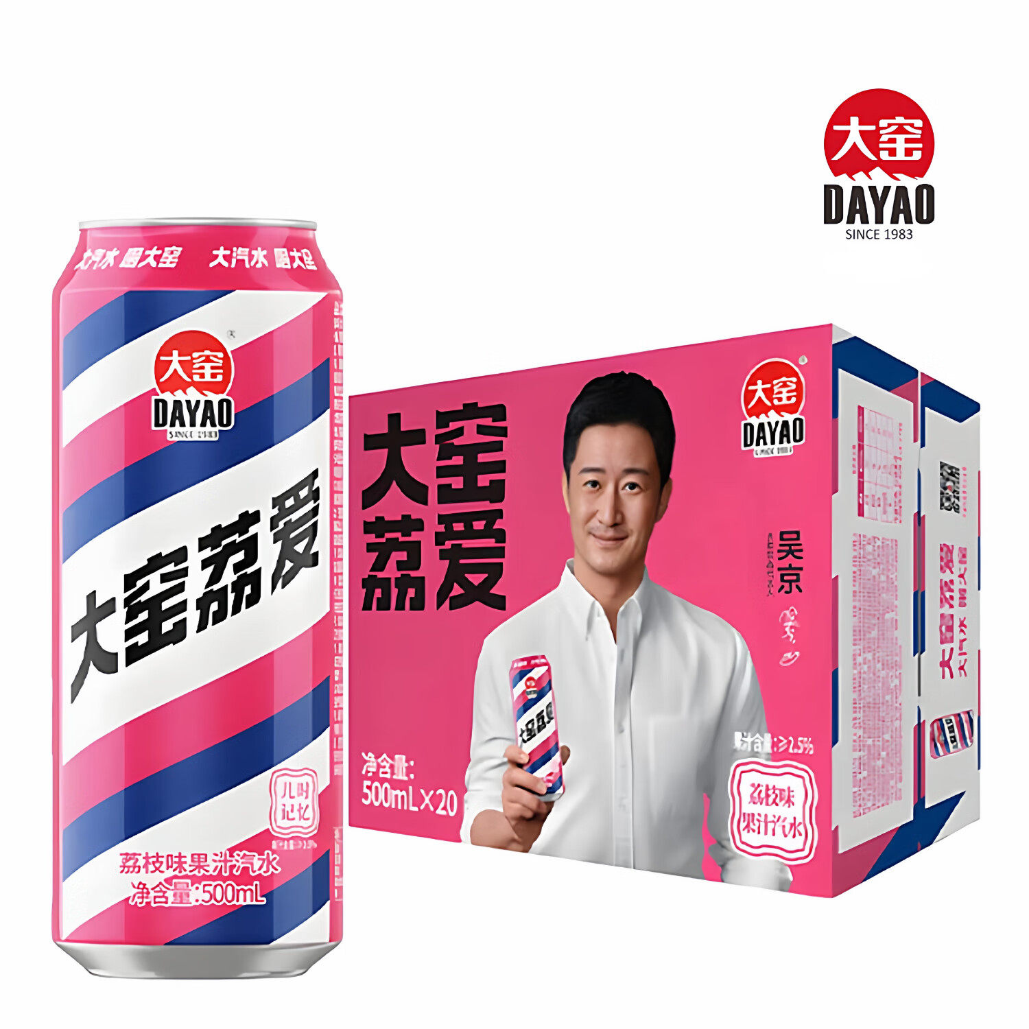 大窑嘉宾汽水500ml*20罐整箱橙诺荔枝橙味碳酸果汁饮料330ml*12罐