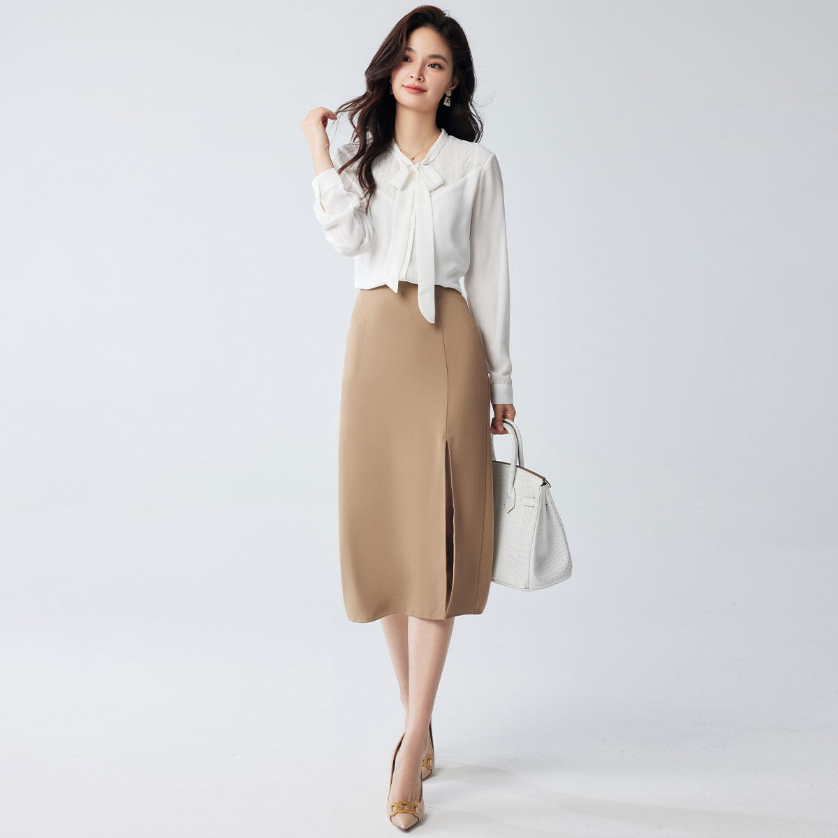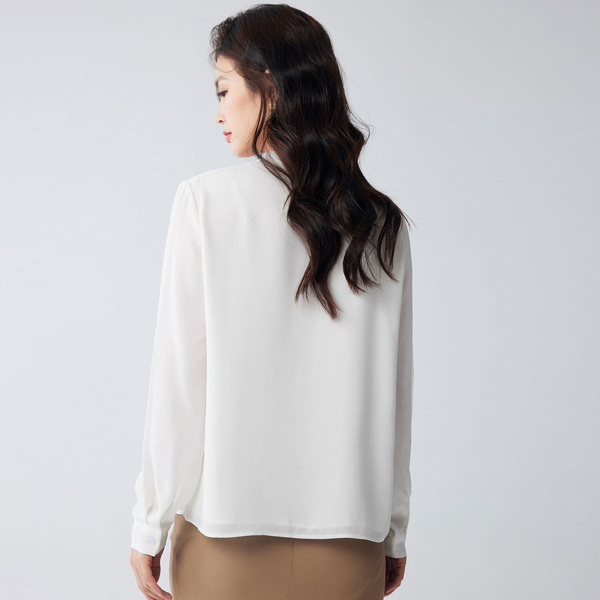 罗蒙春秋长袖衬衫女士时尚优雅蝴蝶结飘带衬衣蕾丝拼接通勤女衬衫