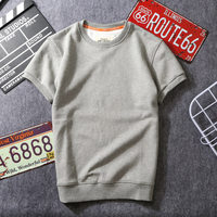 秋冬保暖纯色加绒加厚短袖T恤男韩版宽松大码半袖圆领卫衣打底衫