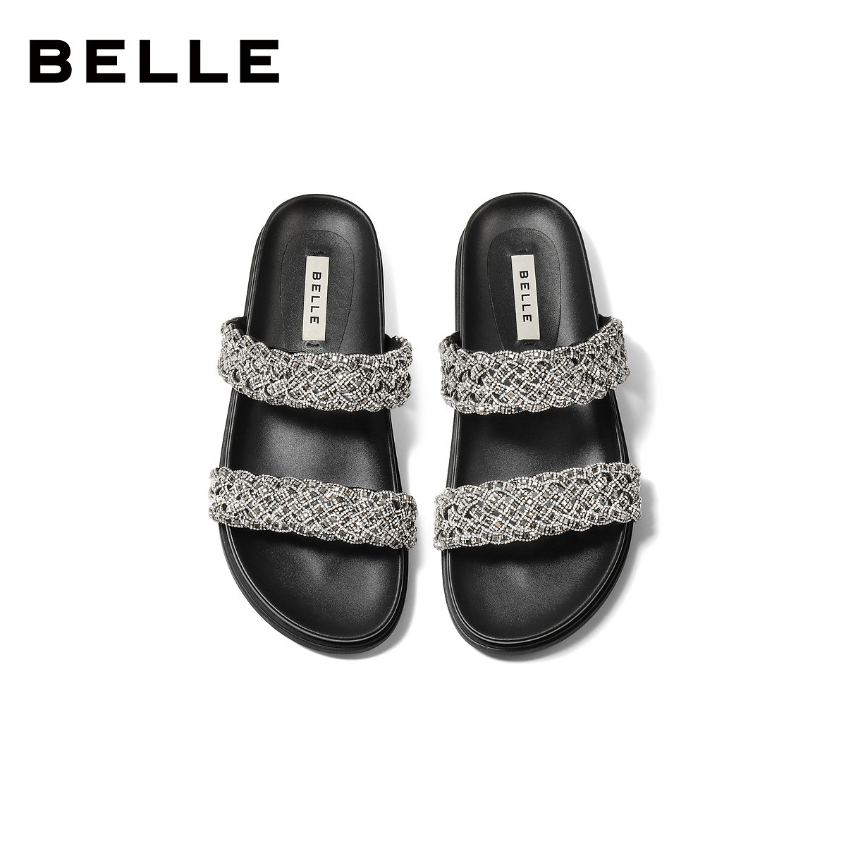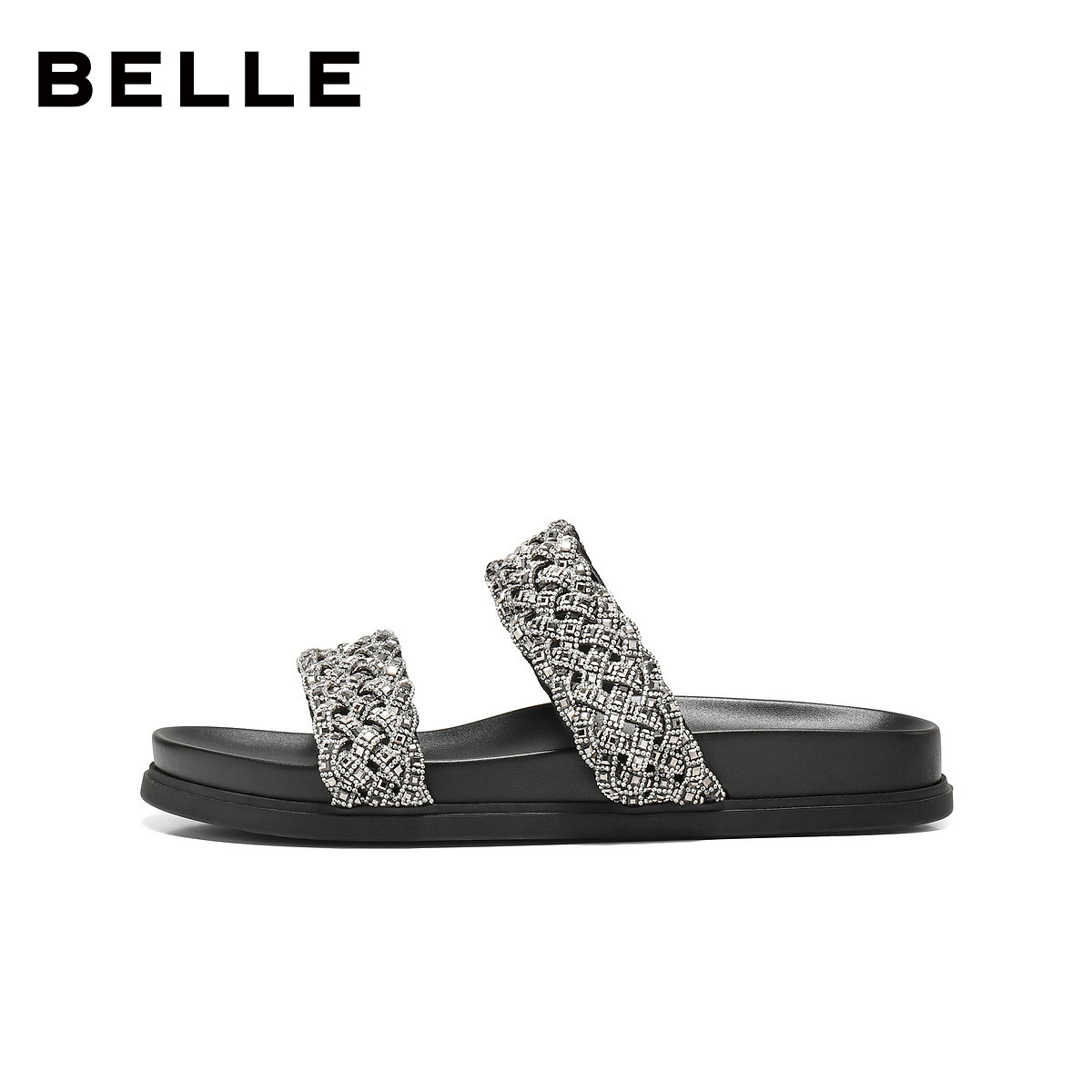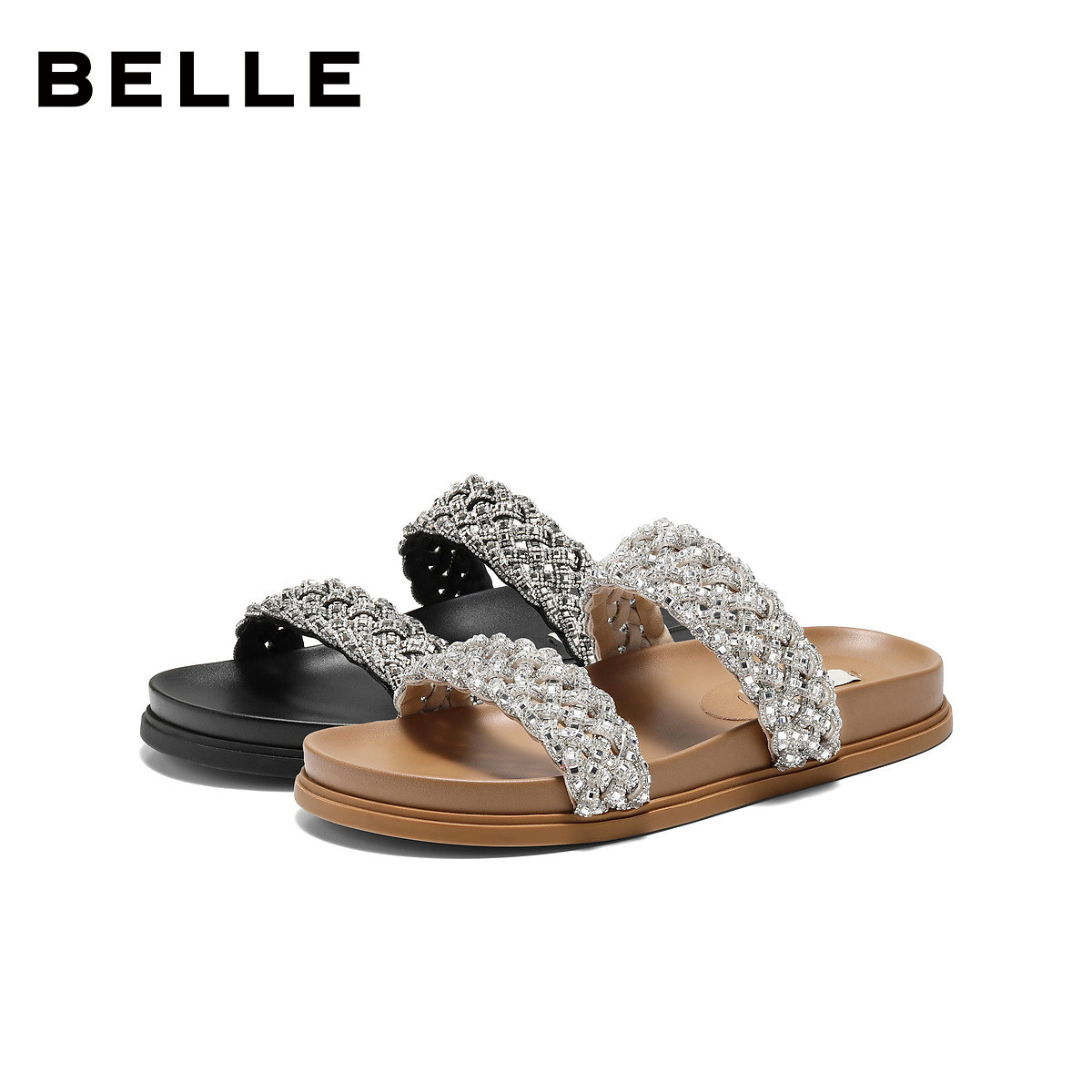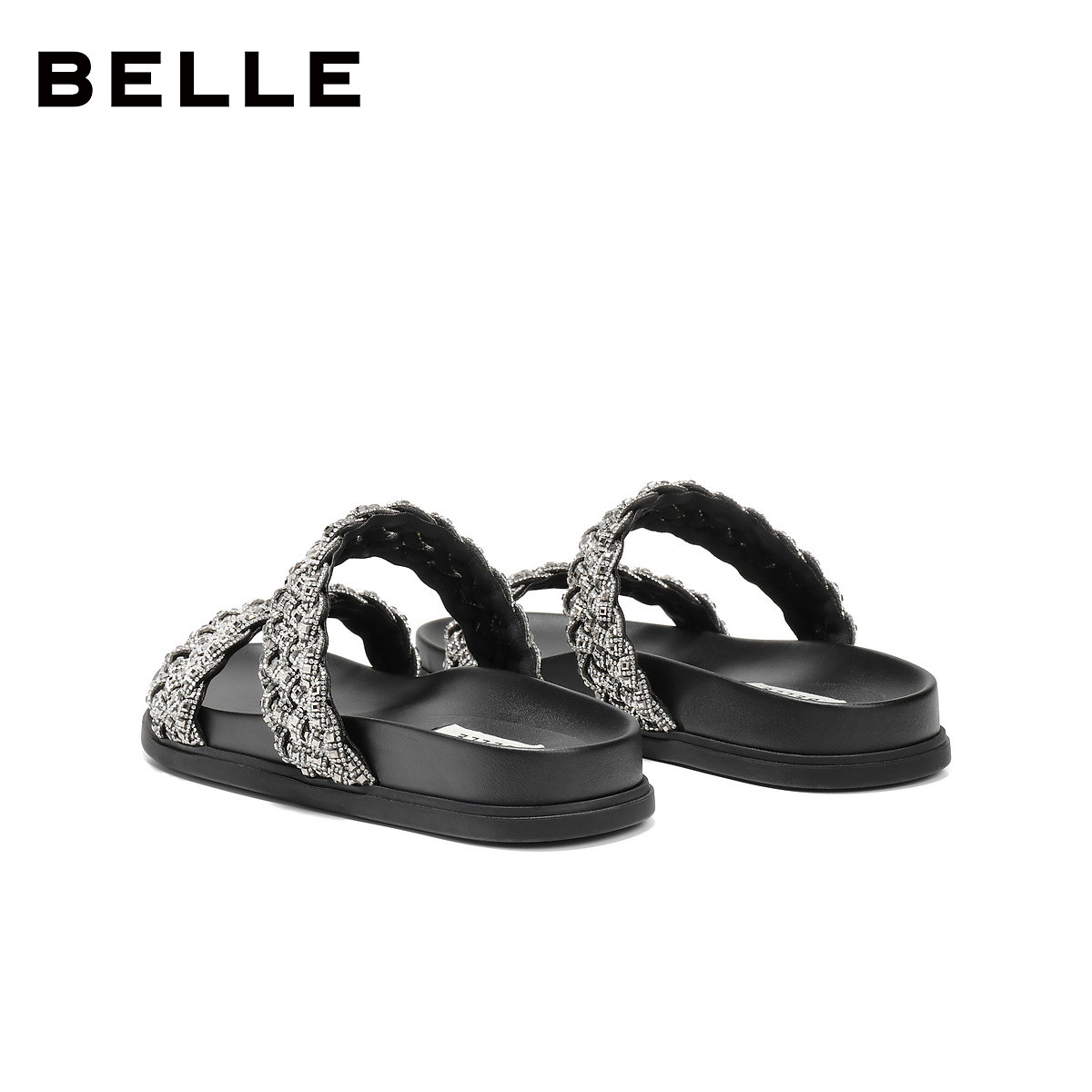百丽闪钻编织休闲拖鞋女2026夏新商场同款舒适低跟拖鞋F5B1DBT6