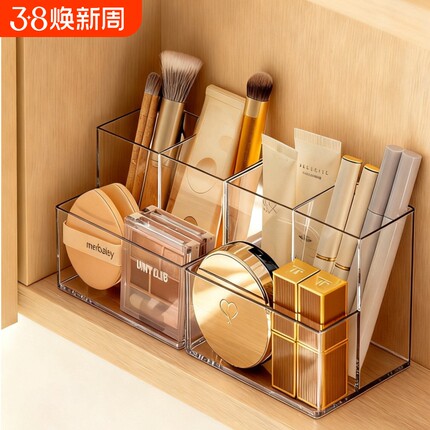镜柜收纳盒透明置物分格整理盒架化妆品桌面护肤品粉扑口红梳妆台