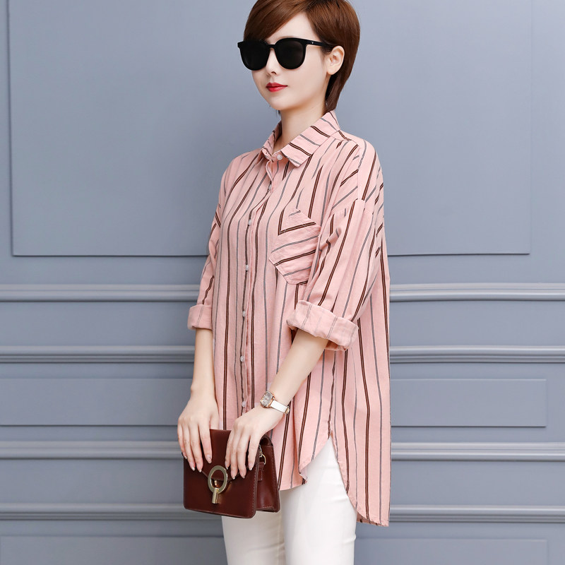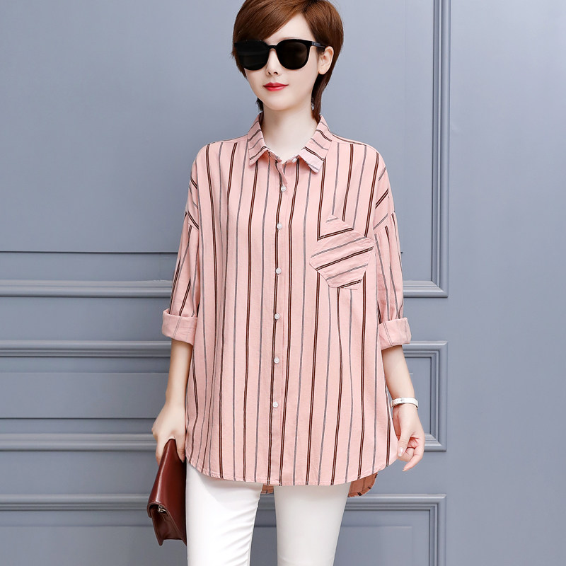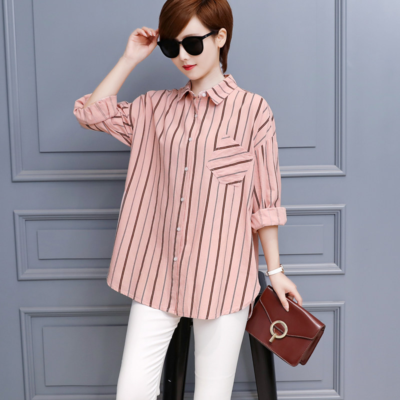 休闲宽松显瘦纯棉条纹衬衫
