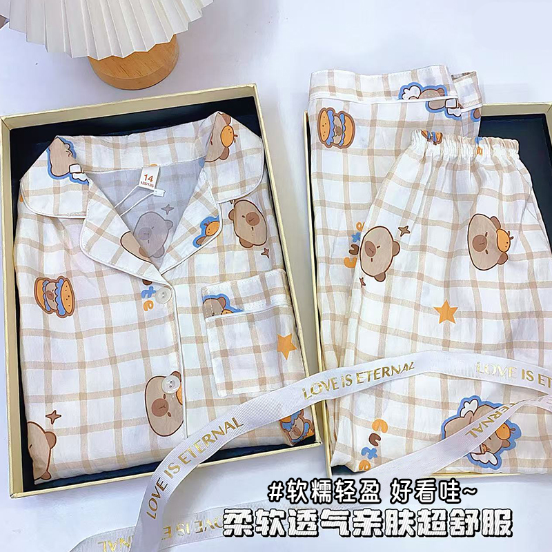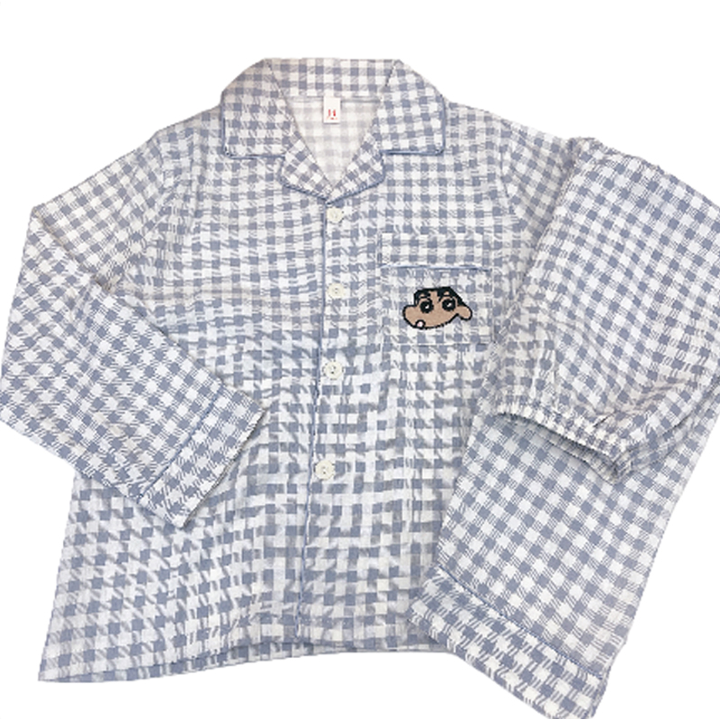 卡通蜡笔格子儿童睡衣男童云朵棉长袖长裤女孩亲子空调家居服套装