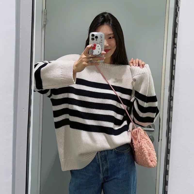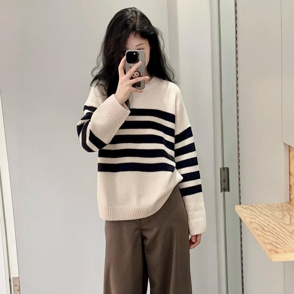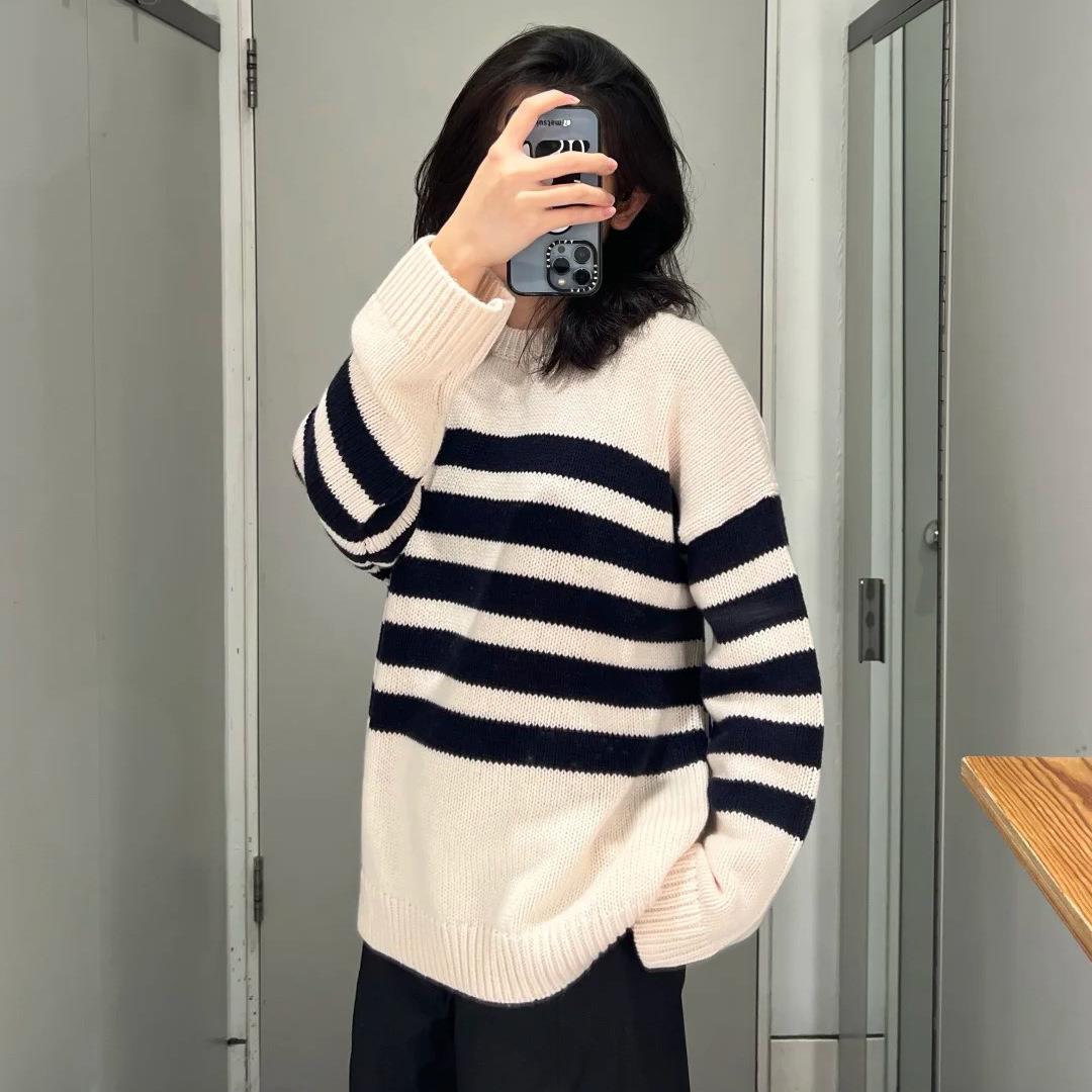 it :orange forest圆领条纹羊毛针织衫女套头衫 2025冬季新品毛衣