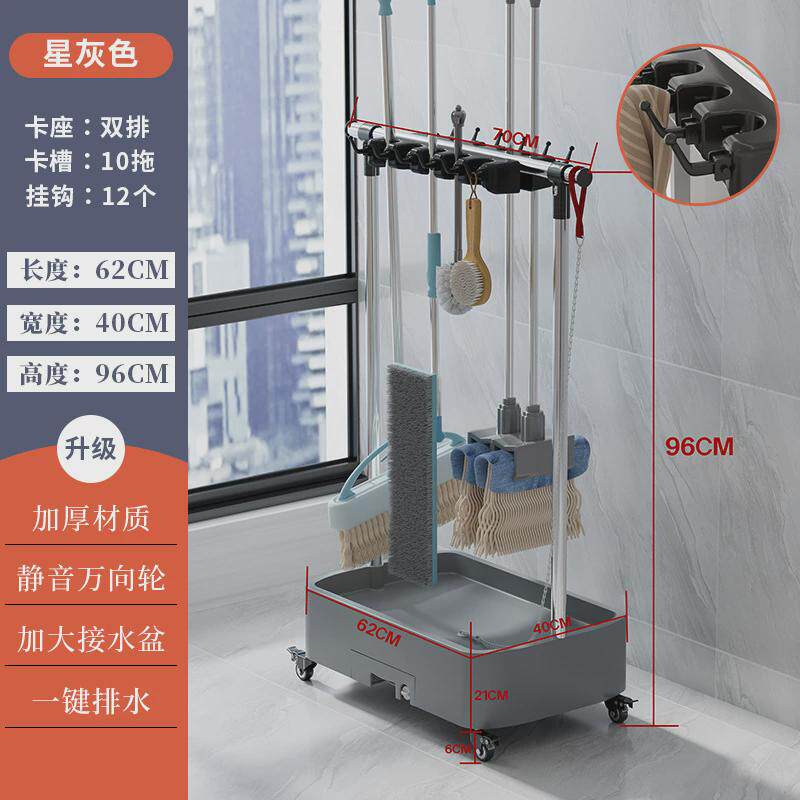 移动落地式拖把架不锈钢放扫把沥水架置物架商用清洁工具收纳拖布