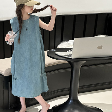 女童连衣裙夏季2026新款儿童洋气大童夏装天丝薄款无袖背心牛仔裙