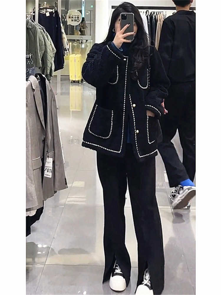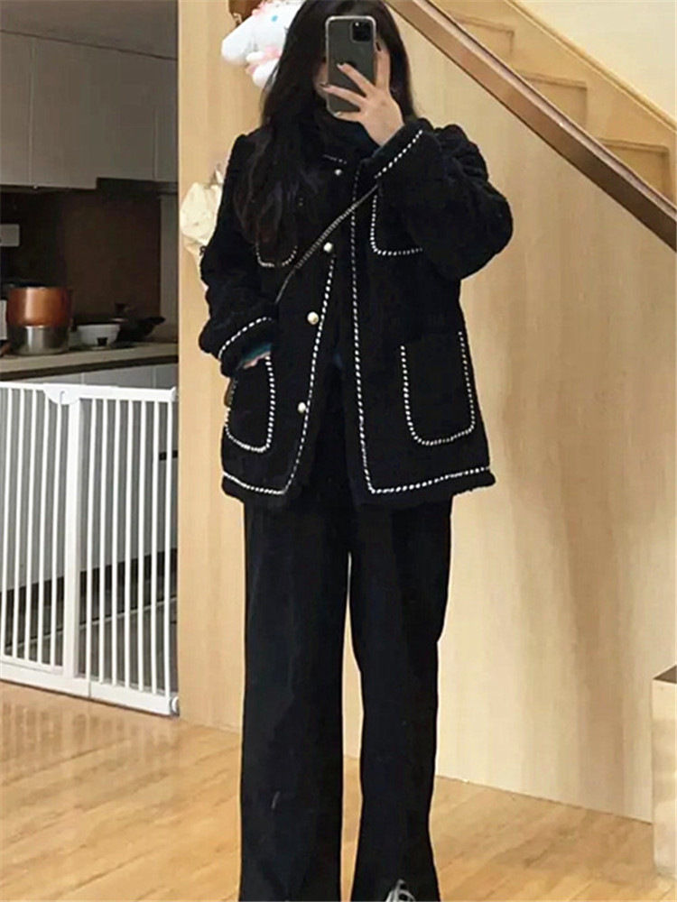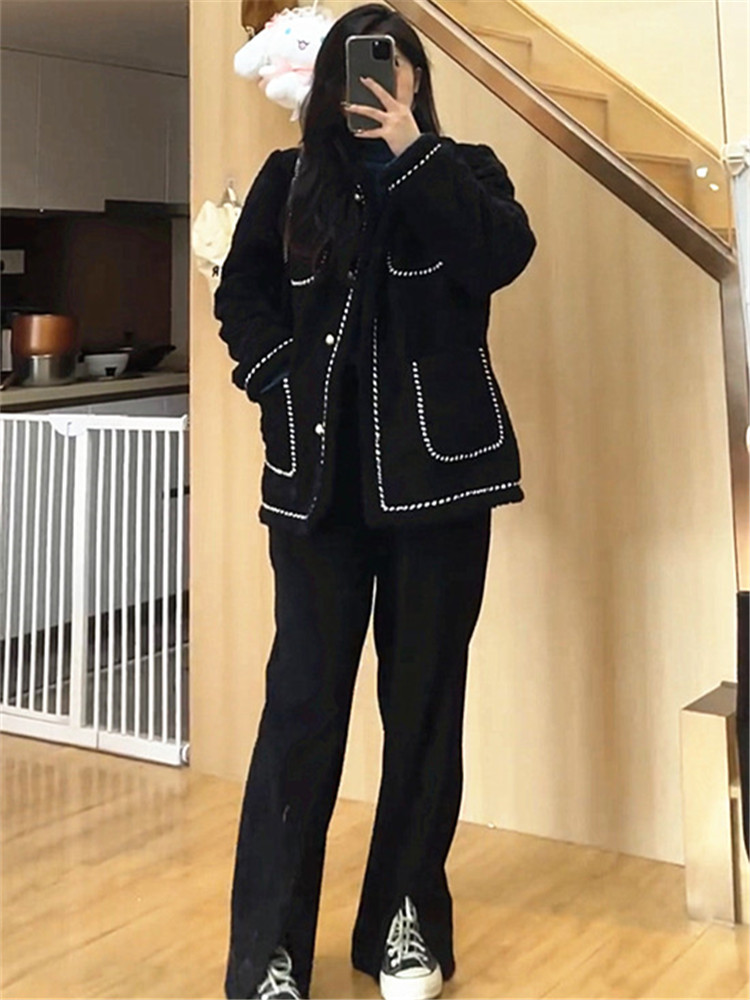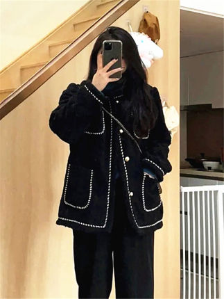 大码微胖2022年秋冬羊羔毛小香风气质正肩短款外套女毛绒加厚棉衣