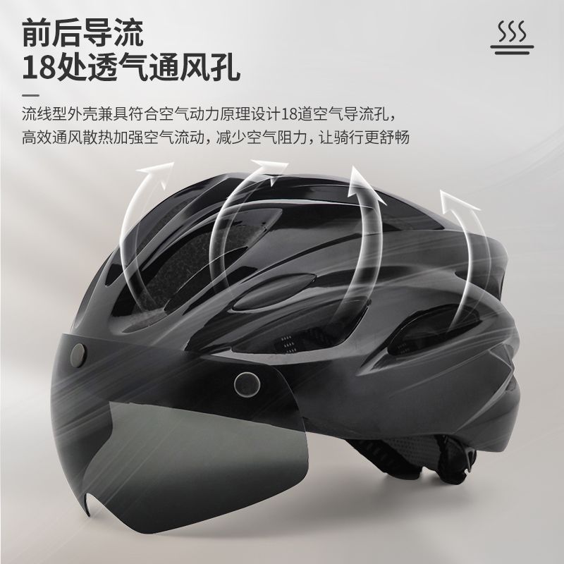 自行车头盔带风镜一体成型骑行头盔男女山地公路车安全帽