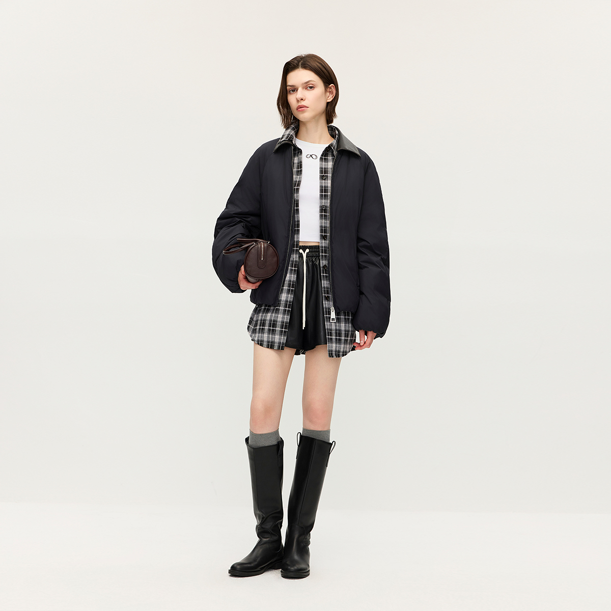 OCHIRLY欧时力 巴恩风皮领插肩羽绒服外套时尚通勤2025秋冬新品*