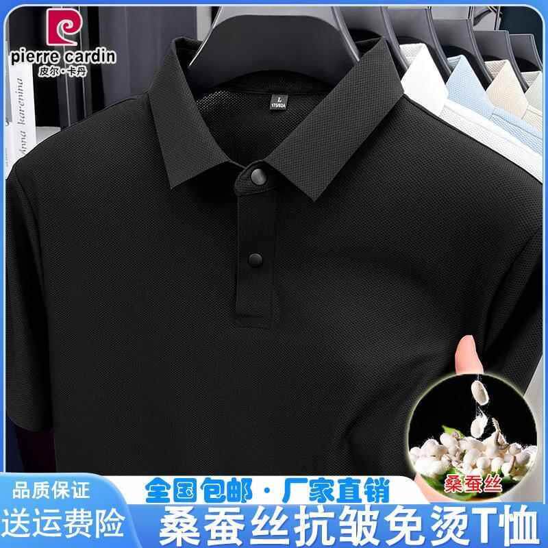 皮尔卡丹夏季冰丝短袖t恤纯色桑蚕丝男士polo衫半袖速干透气上衣