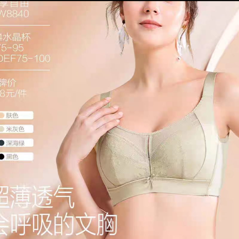 奥丽侬大码CDE文胸超薄水晶杯聚拢上托定型收副乳宽肩带内衣8840