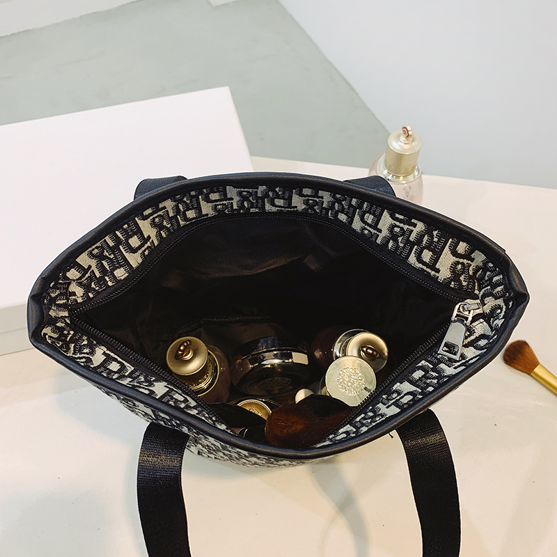 2025黑白手提女包潮网红便携时尚旅行化妆包明星同款购物袋收纳包