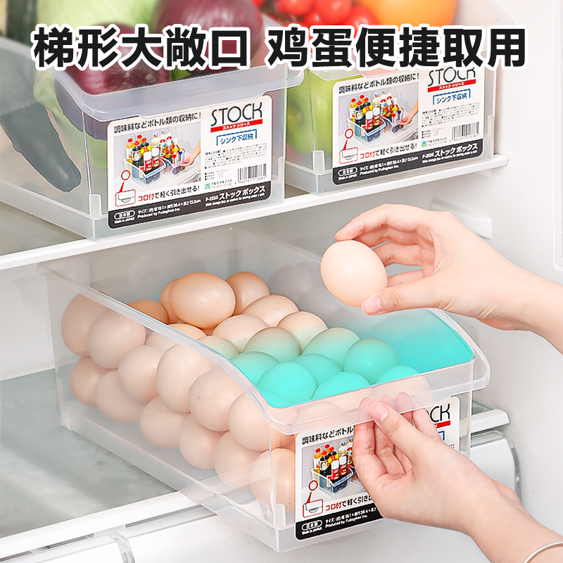日本进口鸡蛋收纳盒抽屉式滑轮冰箱水果整理神器食品级蔬菜保鲜筐