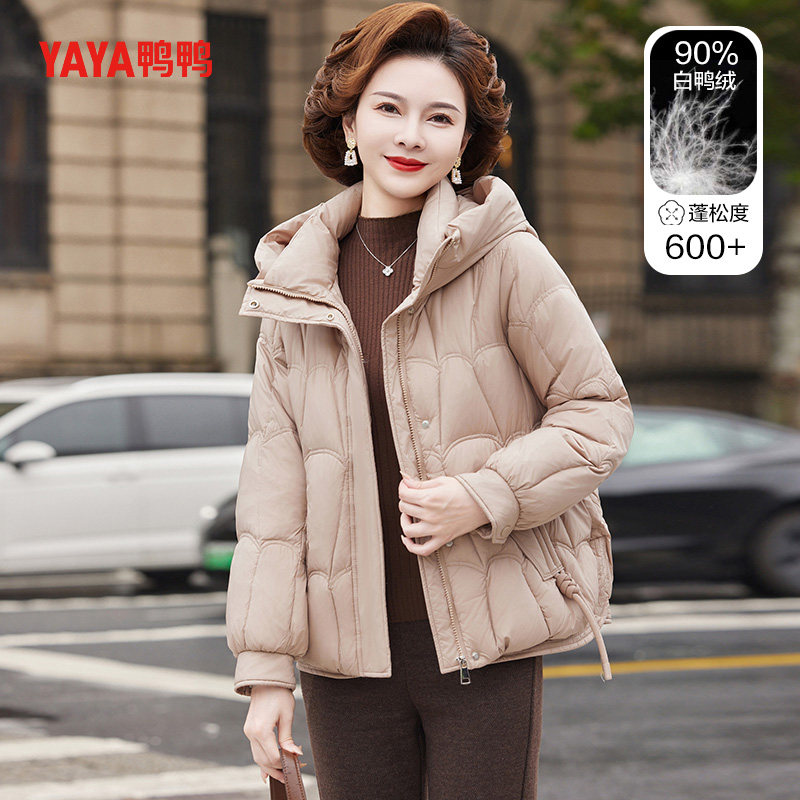 鸭鸭冬季羽绒服女短款中年妈妈鸭绒保暖冬装2024新款中老年人外套