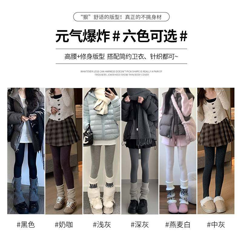 灰色紧身打底裤女外穿冬季2025新款高腰显瘦秋裤加绒加厚保暖棉裤
