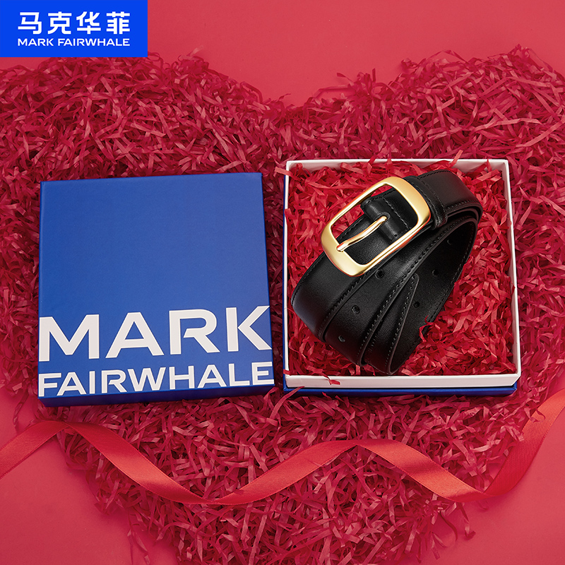 马克华菲皮带女士真皮腰带正品2025新款经典百搭针扣牛皮裤带女款