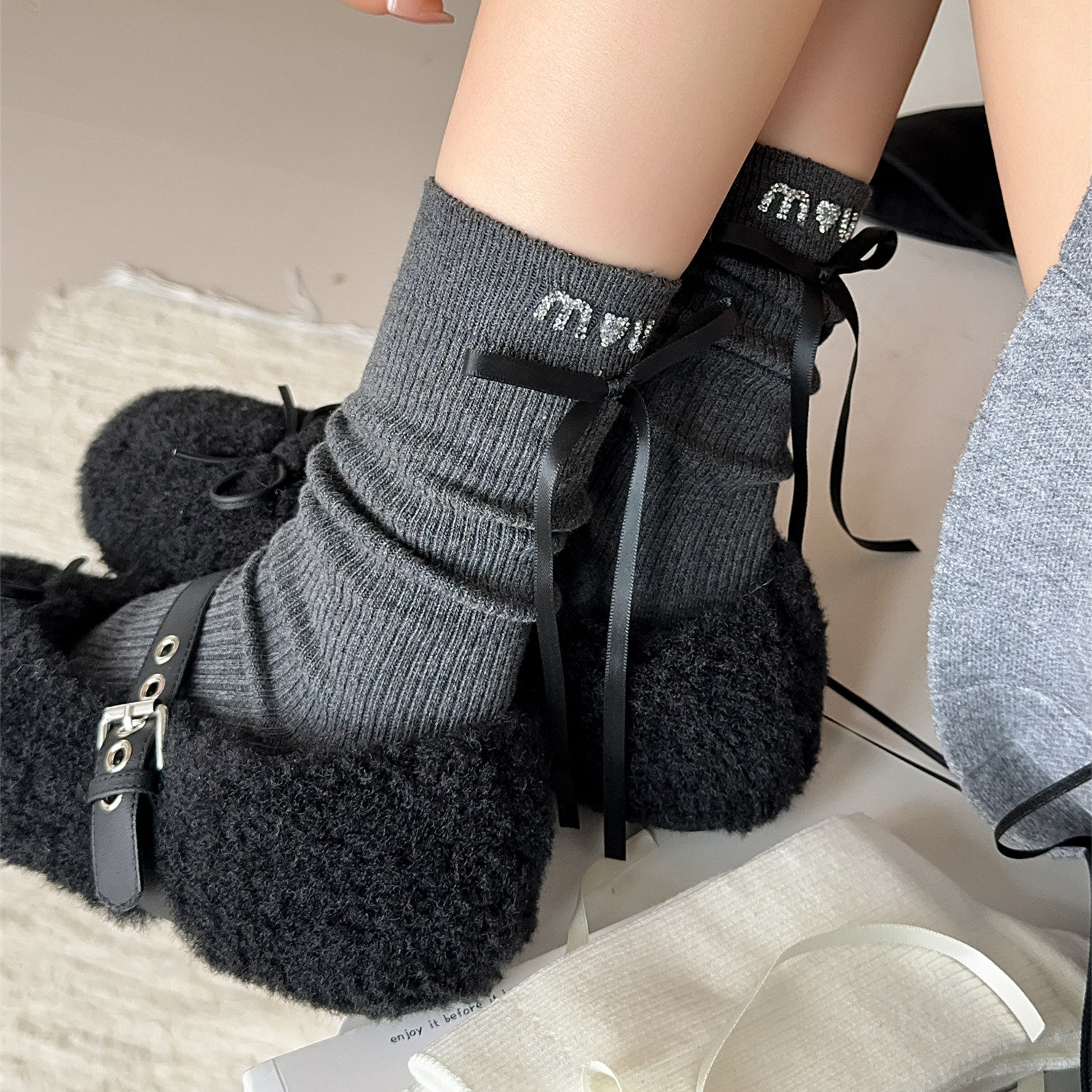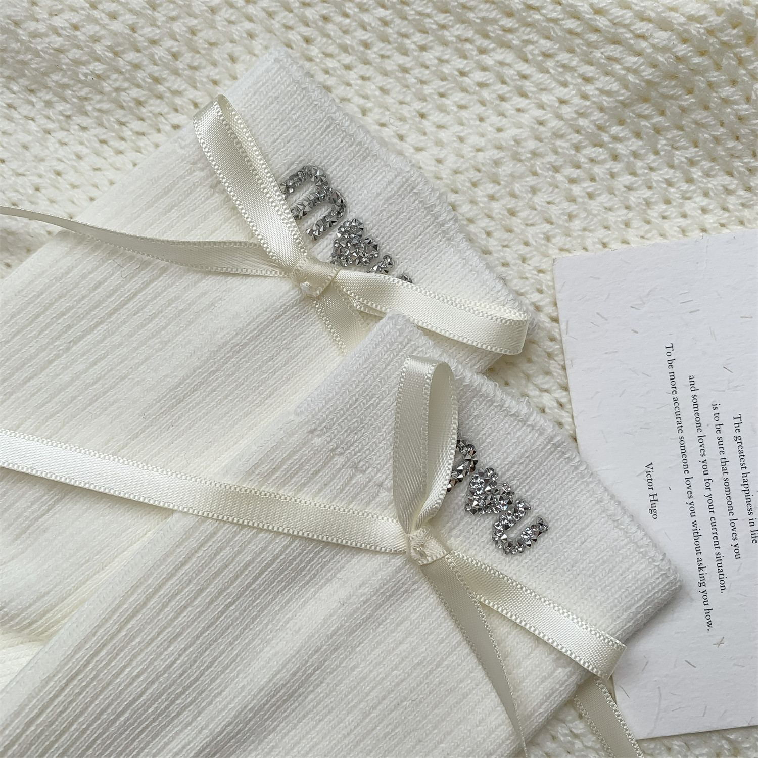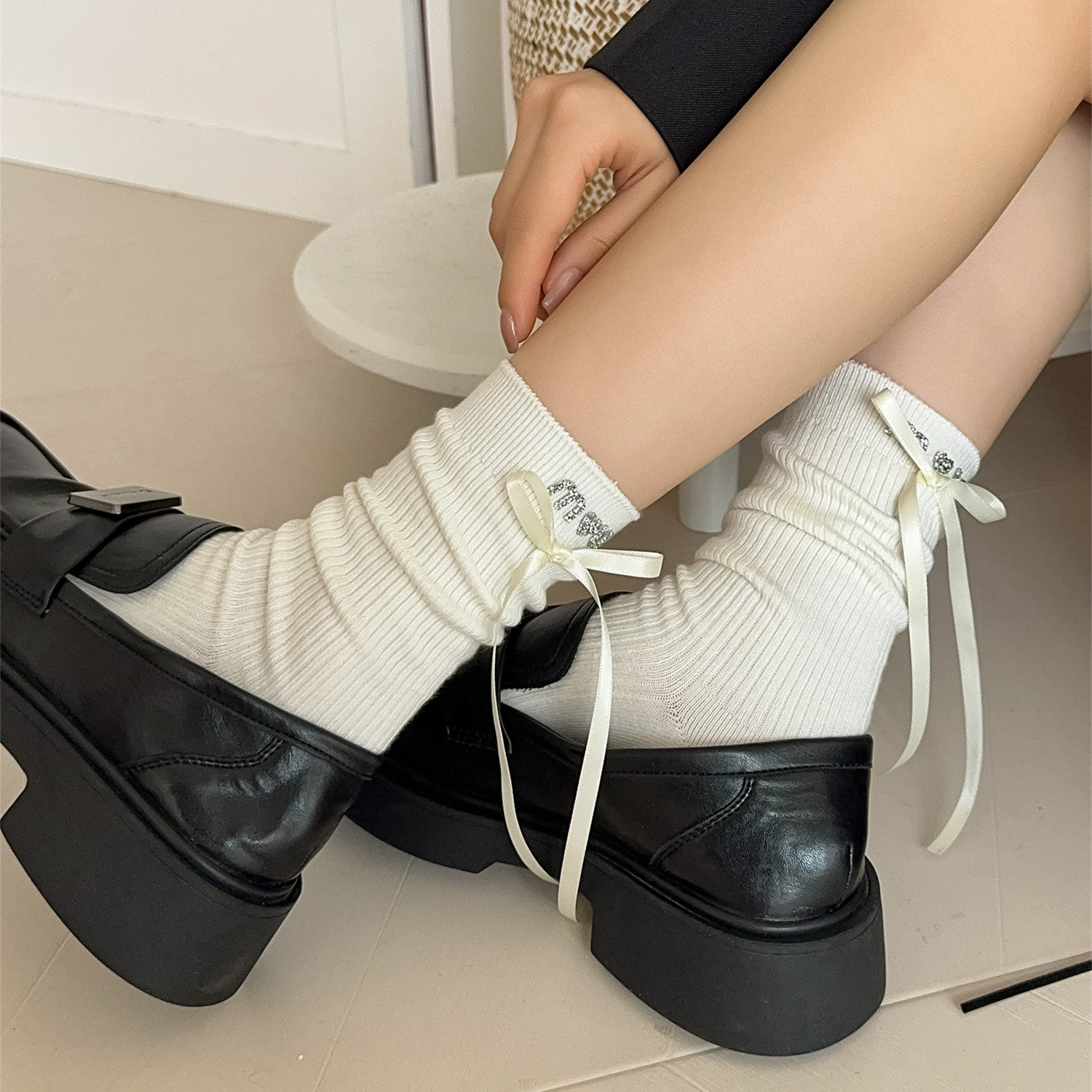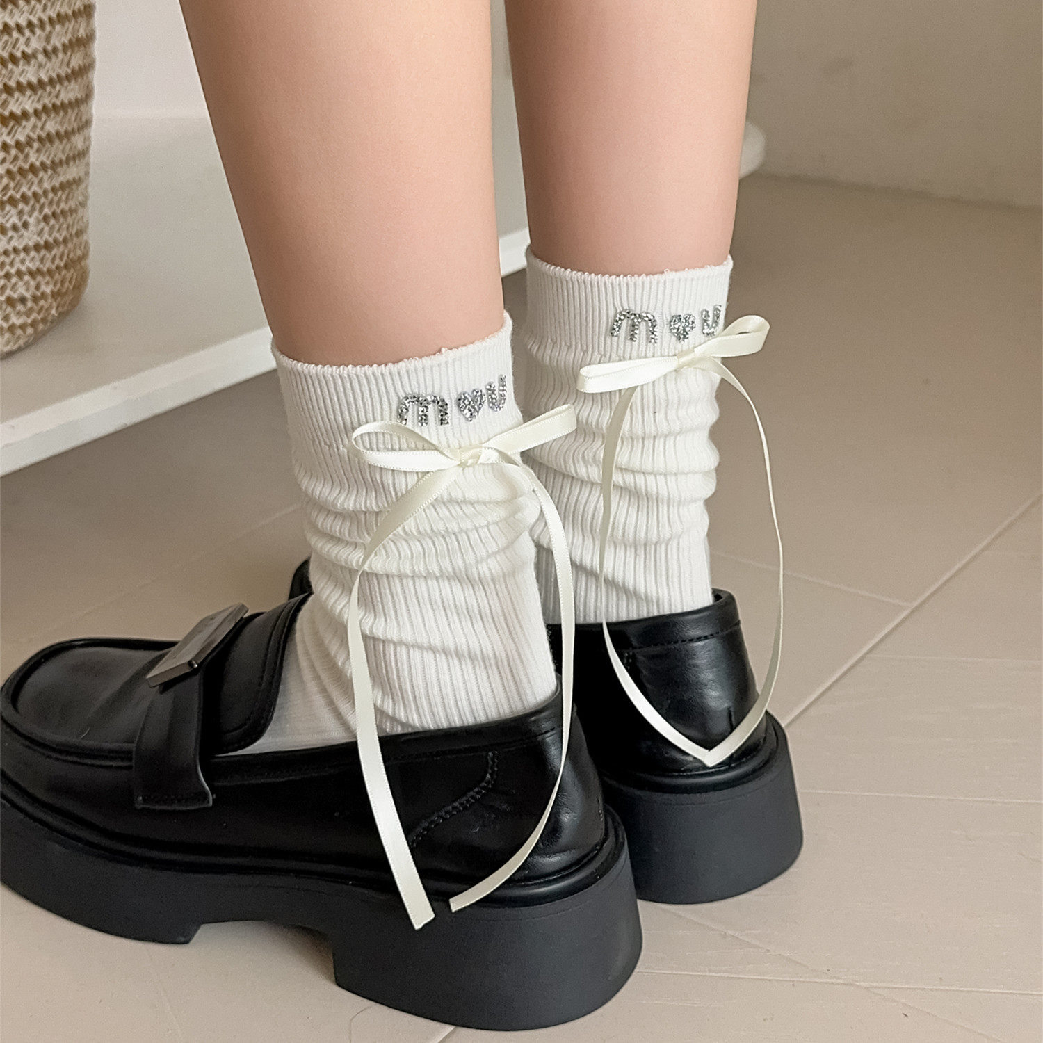 春秋纯棉蝴蝶结爱心烫钻装饰女袜 女士中筒袜 保暖 全店5双包邮