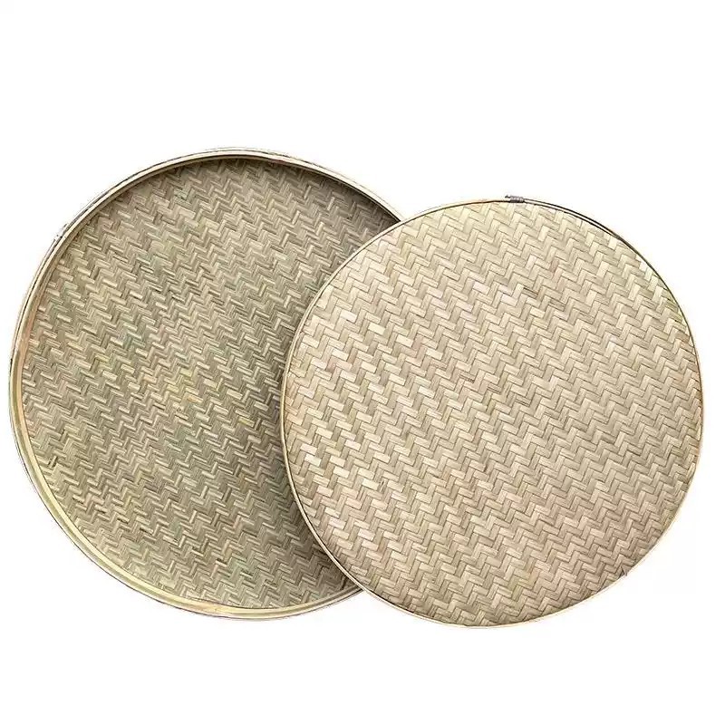 竹编簸箕大号圆形无孔晾晒茶叶筛子装饰幼儿园绘画画舞蹈道具竹匾