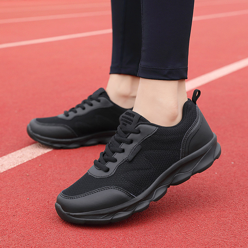 防滑黑色运动鞋女鞋2025新款春夏网面透气轻便软底休闲旅游跑步鞋