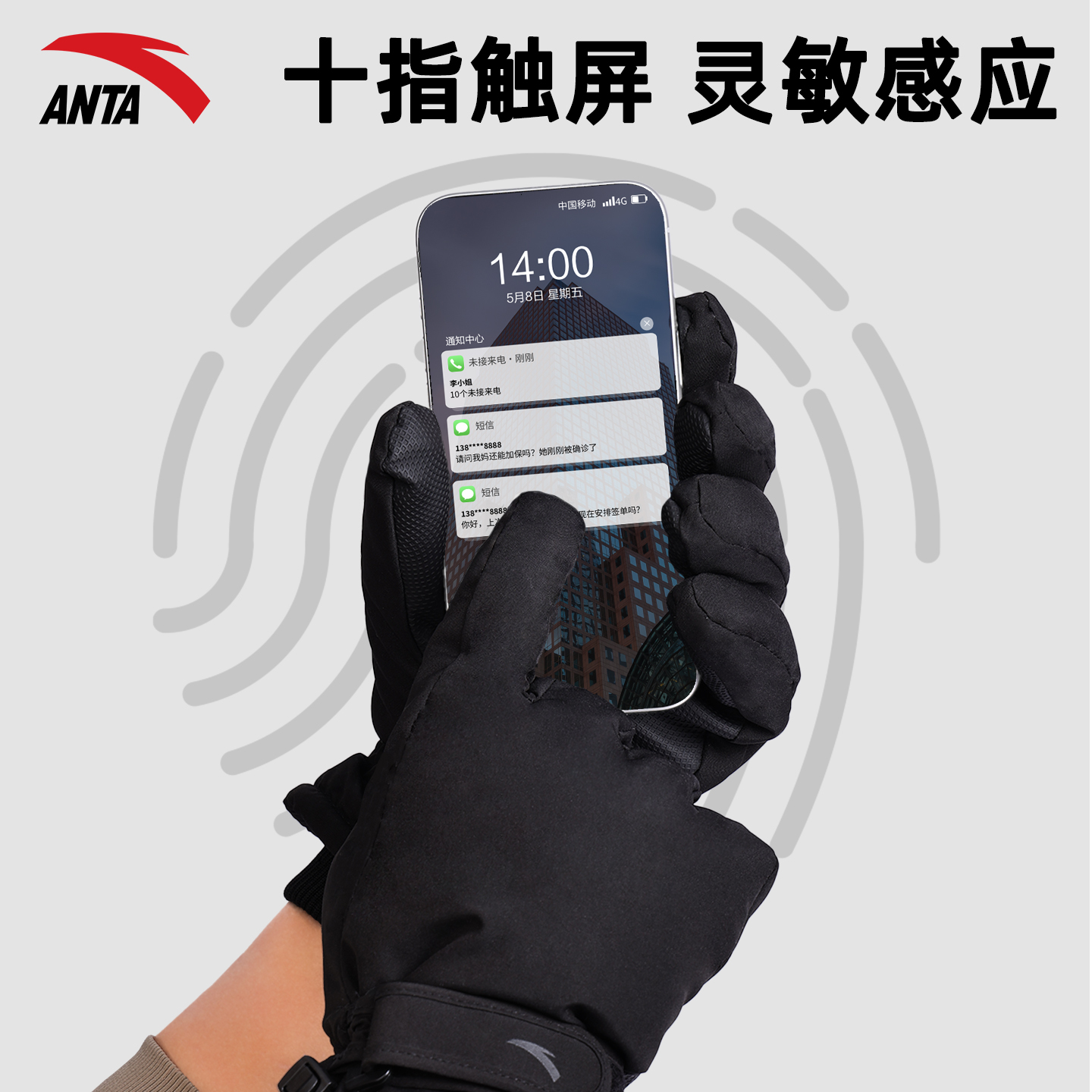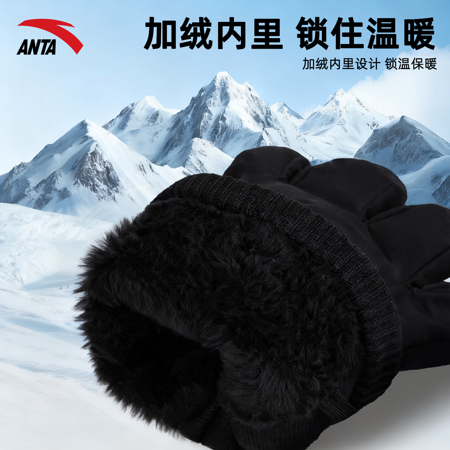 安踏骑行手套秋冬季加绒加厚保暖男防风防寒女滑雪骑行可触屏跑步