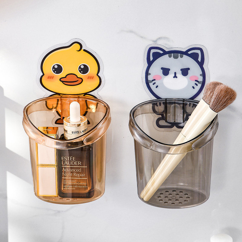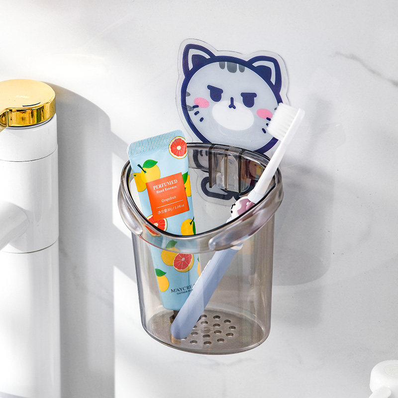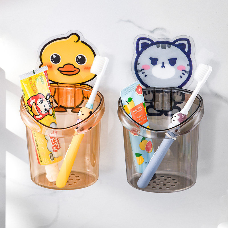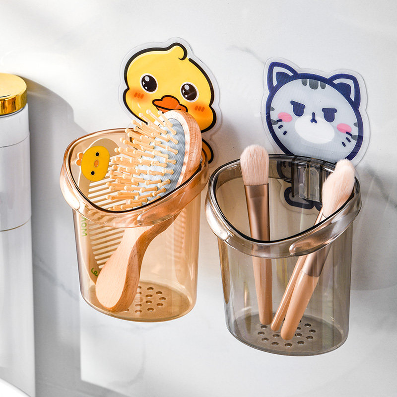 卡通浴室梳子置物架壁挂式免打孔卫生间洗漱台牙刷牙膏沥水收纳架