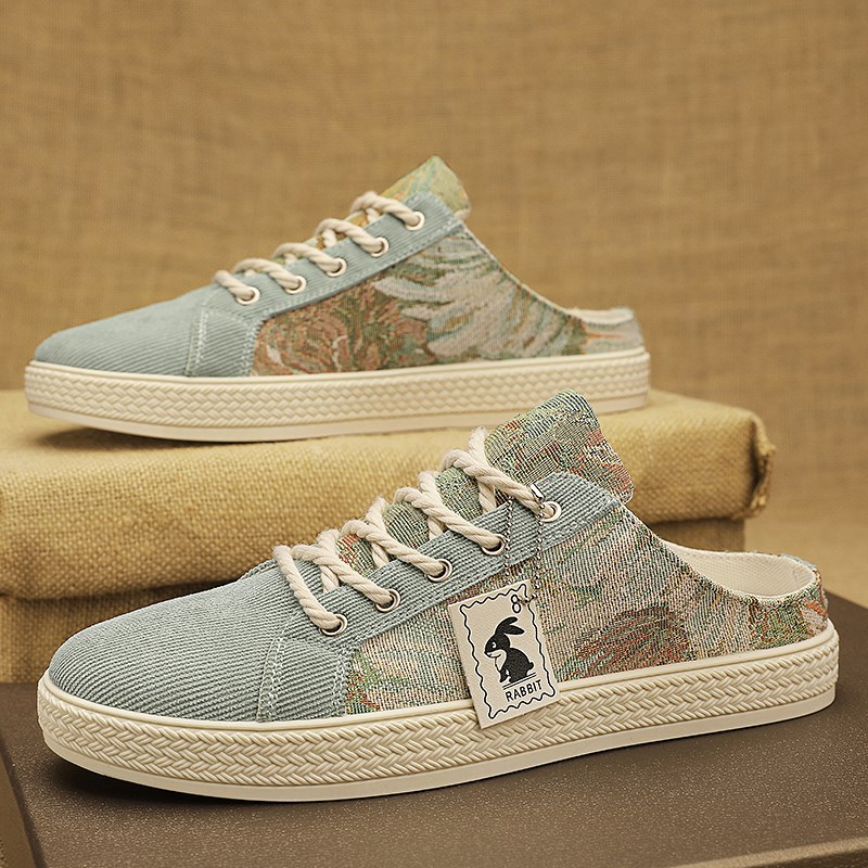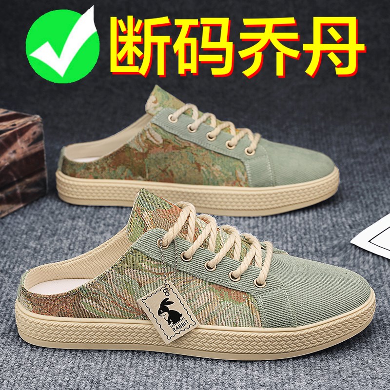 帆布男鞋夏季透气一脚蹬办公室上班半拖鞋男士开车休闲无后跟布鞋