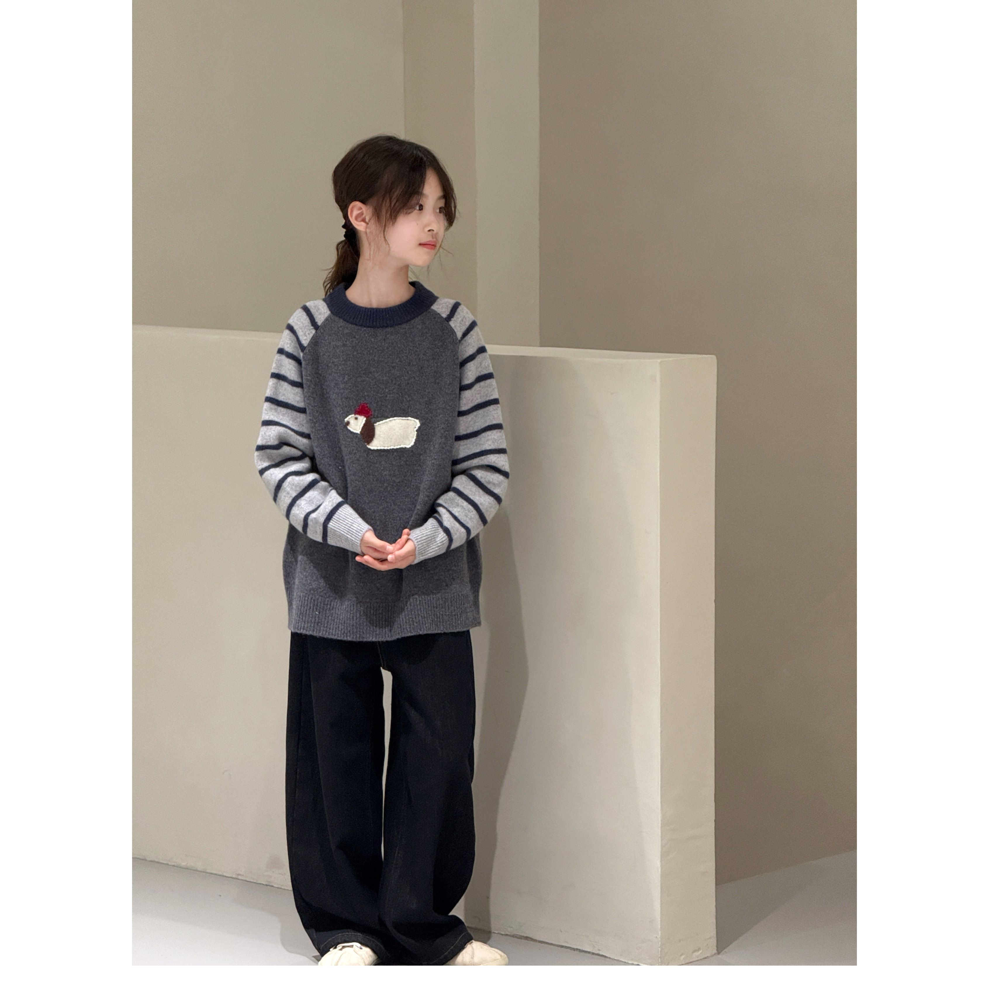 波拉bora韩国童装儿童羊绒衫冬季2025新款JASPER男童女童圆领毛衣