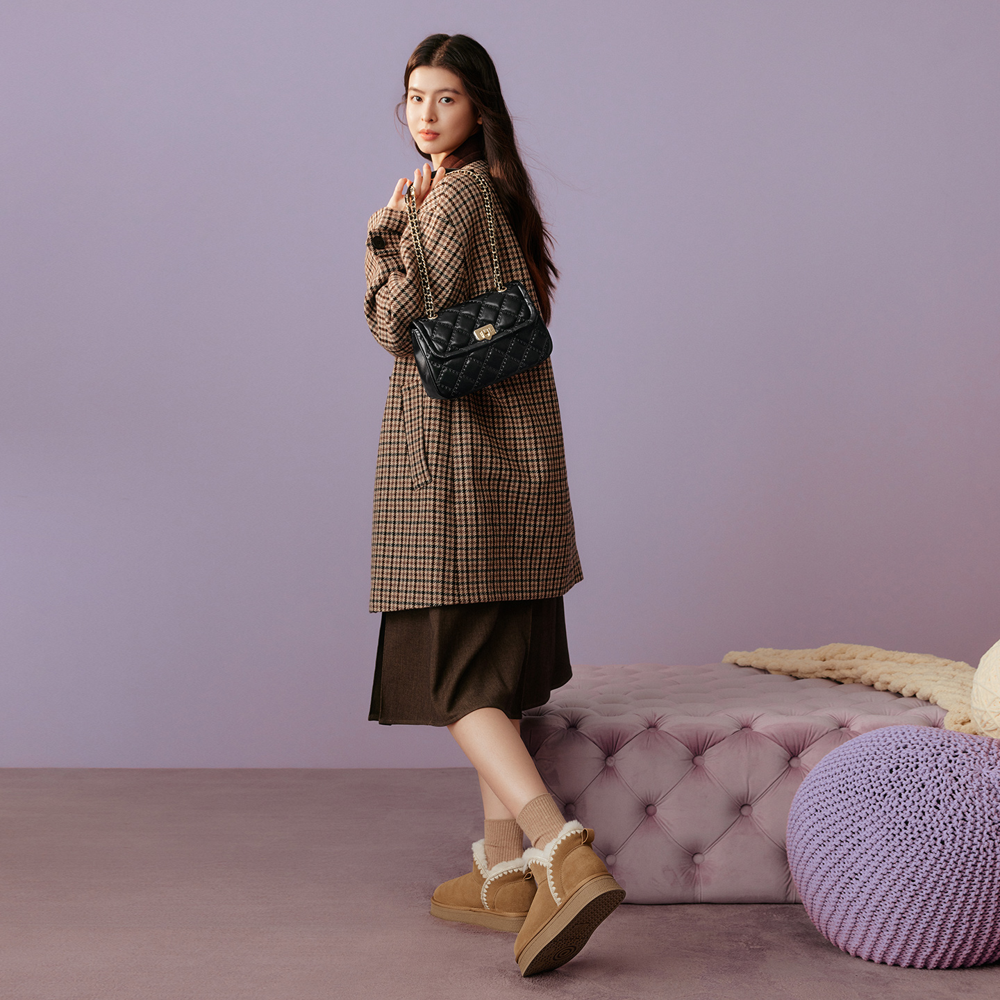 百思图2026春季新款商场同款绗缝包时髦链条单肩斜挎包女TY068AX6