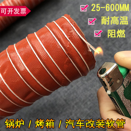 耐高温300度红色矽胶钢丝软管 蒸汽锅炉排烟排气阻燃排热气管道