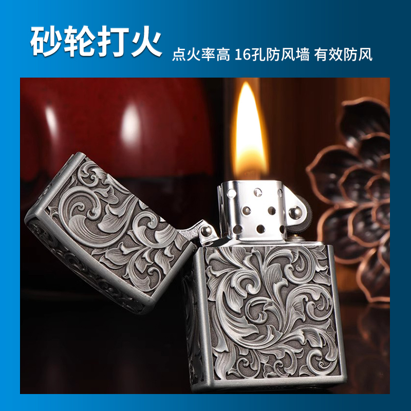 正品ZORRO佐罗煤油打火机男士盔甲创意深雕复古青铜唐草创意礼物