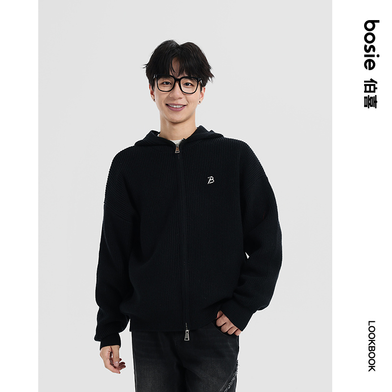 bosie伯喜2025年秋季新款开襟连帽卫衣男情侣休闲运动宽松帽衫潮