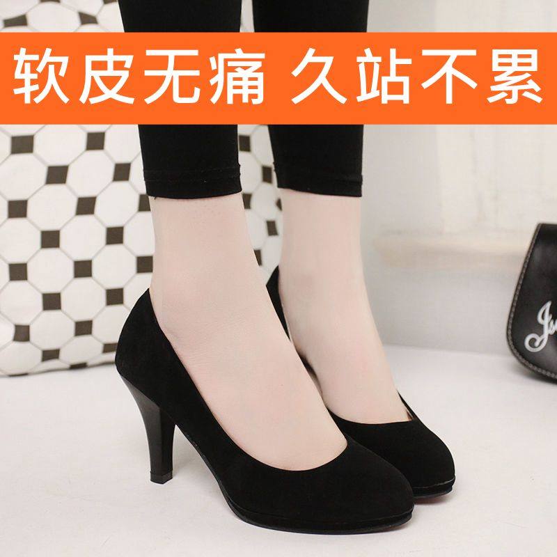 大学生礼仪高跟鞋子女生空乘面试正装圆头小皮鞋黑色职业工作单鞋