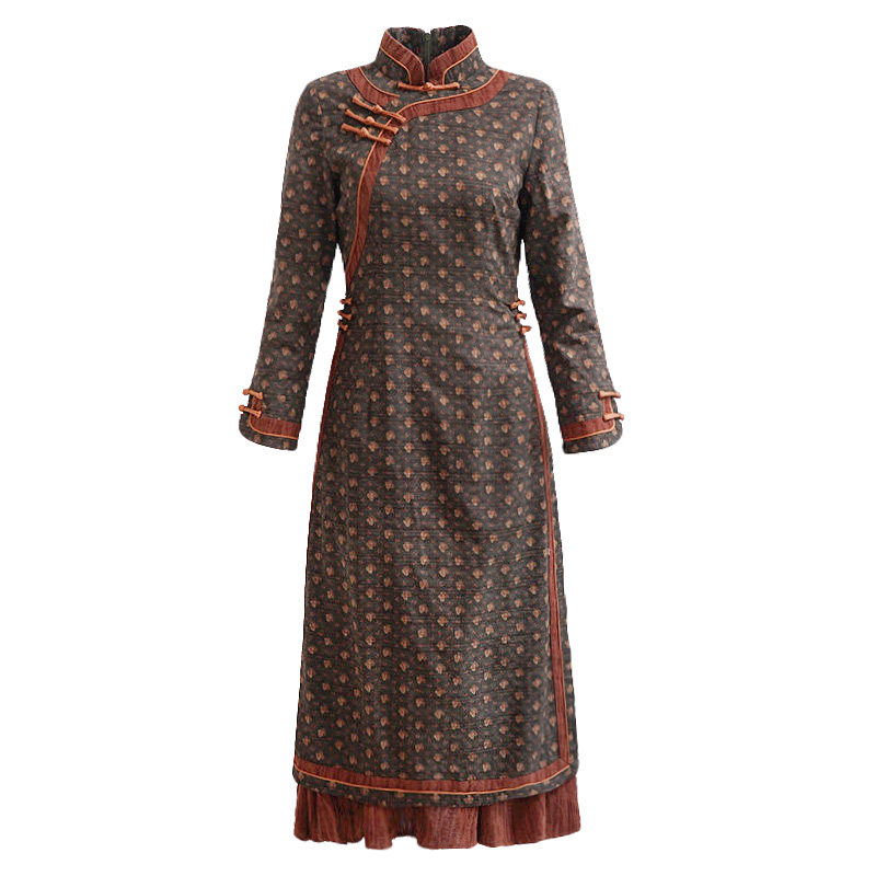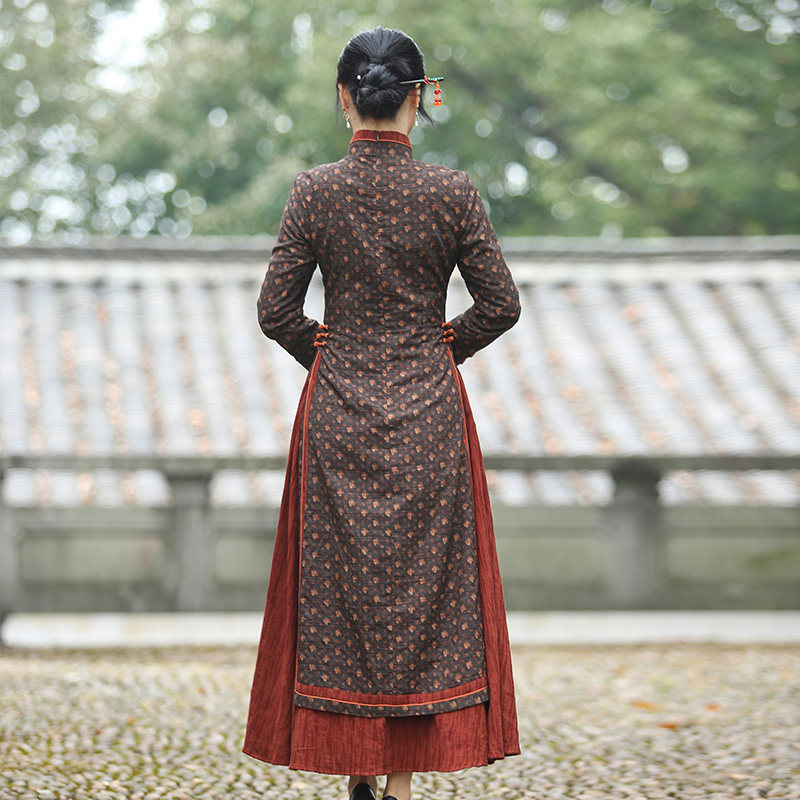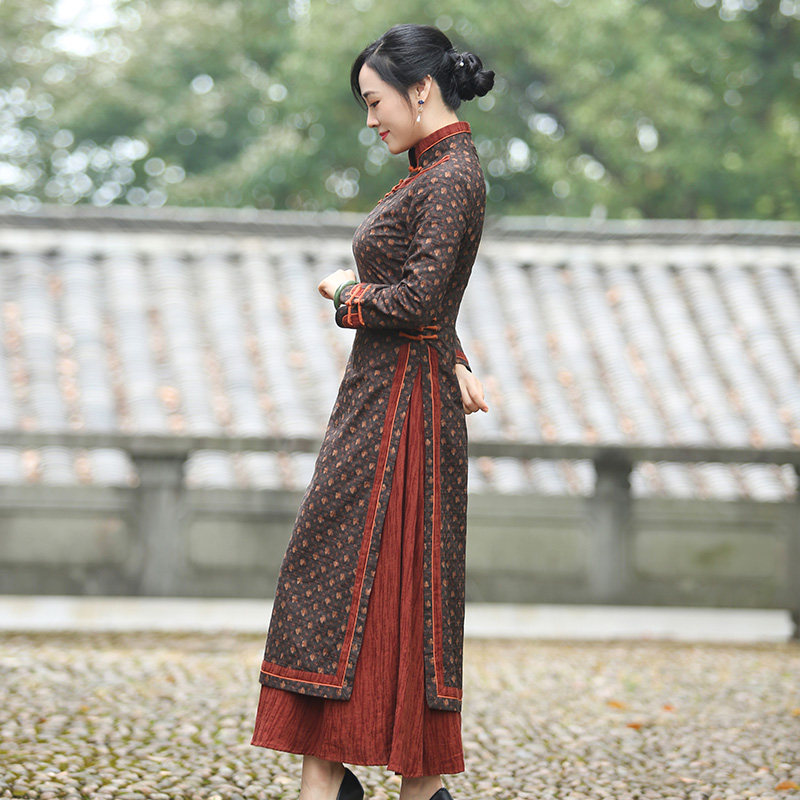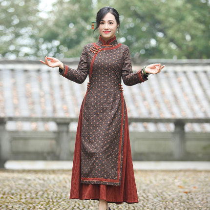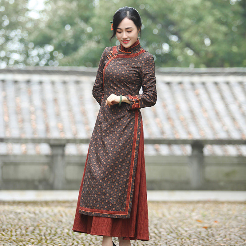 如意风改良旗袍中国风奥黛款春秋新款连衣裙气质复古休闲中式女装