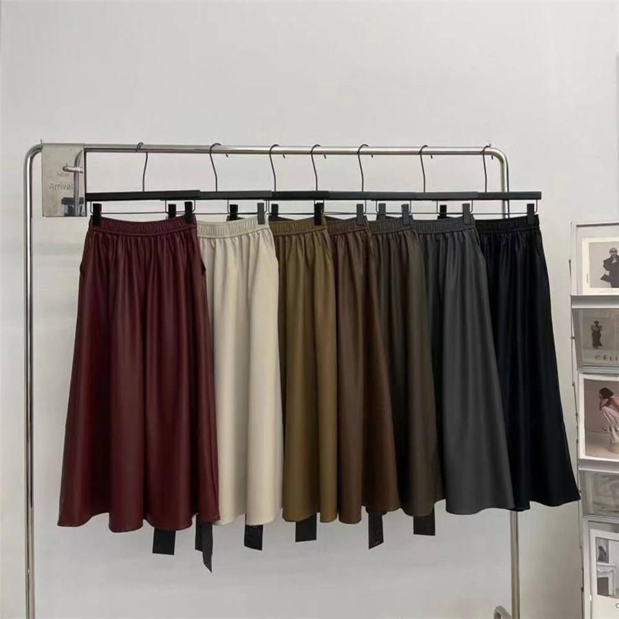 2024秋冬纯色口袋皮裙半身裙裙子女时尚显瘦中长裙潮流欧货遮肉韩